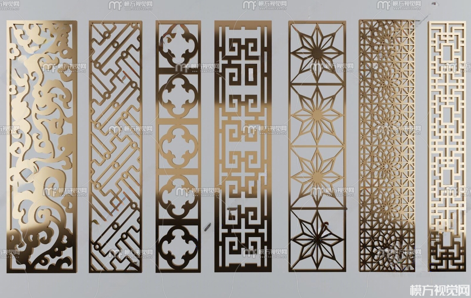 现代金属屏风隔断组合3D模型(ID:0036854)