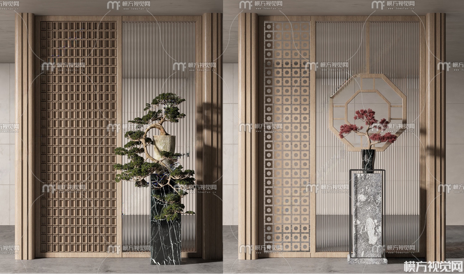 新中式玻璃屏风隔断组合3D模型(ID:0036874)