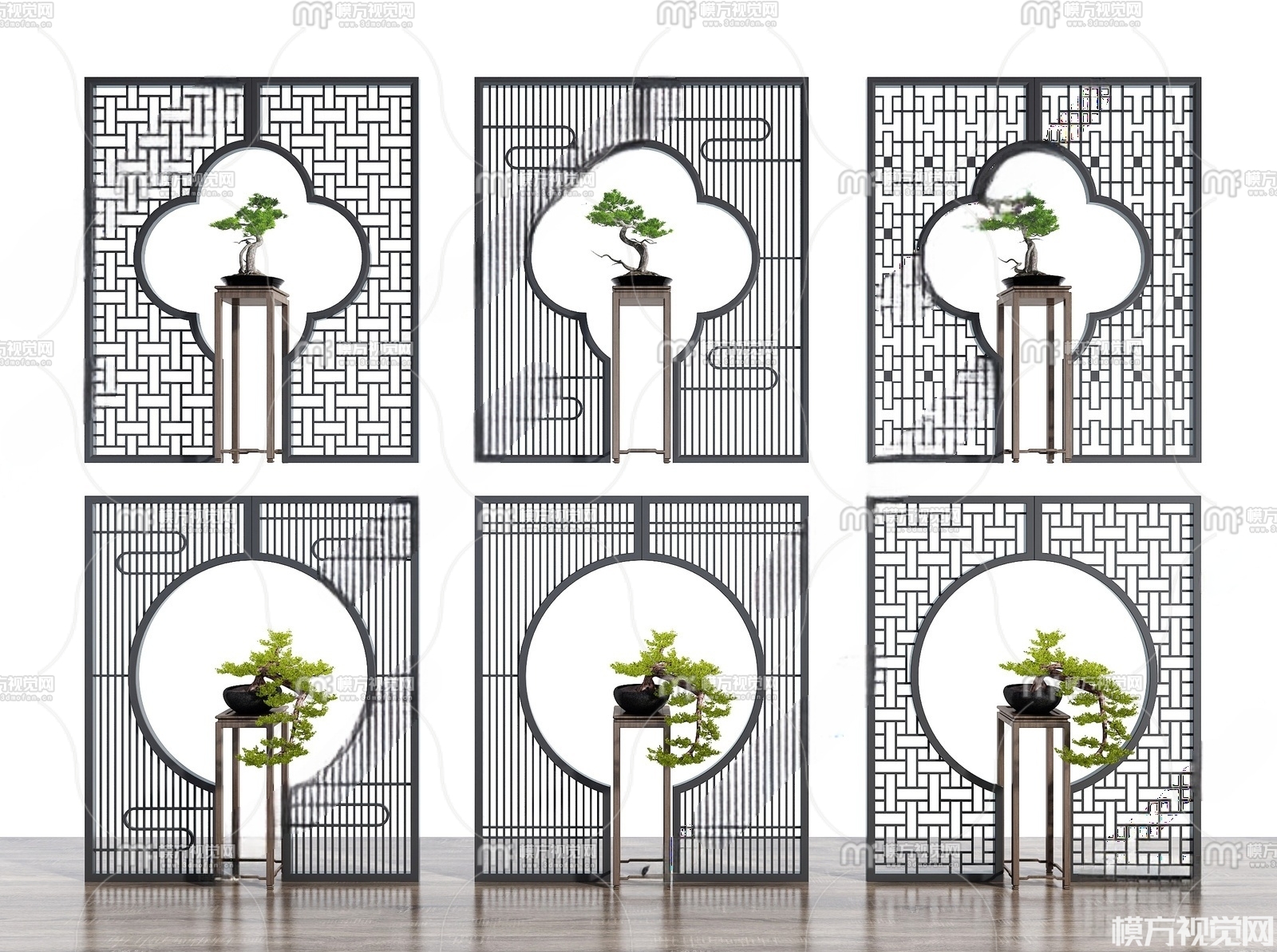 新中式花格屏风隔断组合3D模型(ID:0036876)