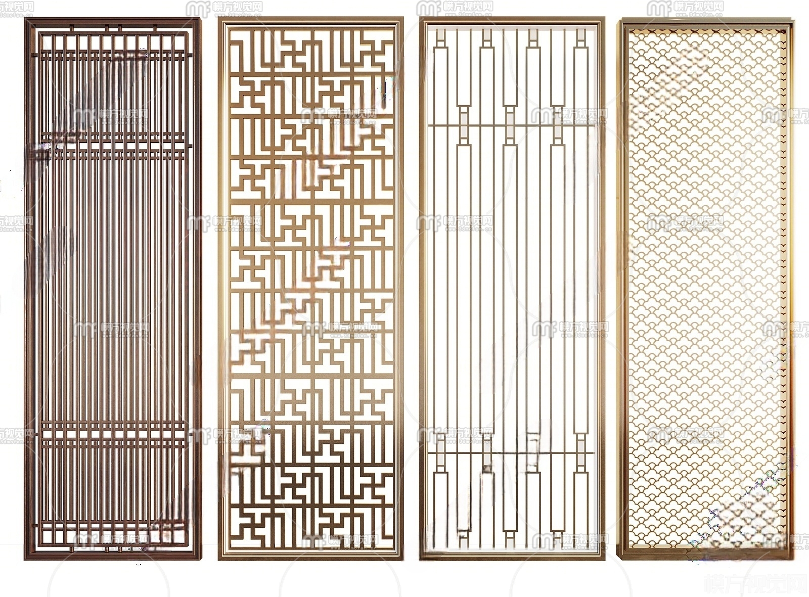 新中式花格屏风隔断组合3D模型(ID:0036877)