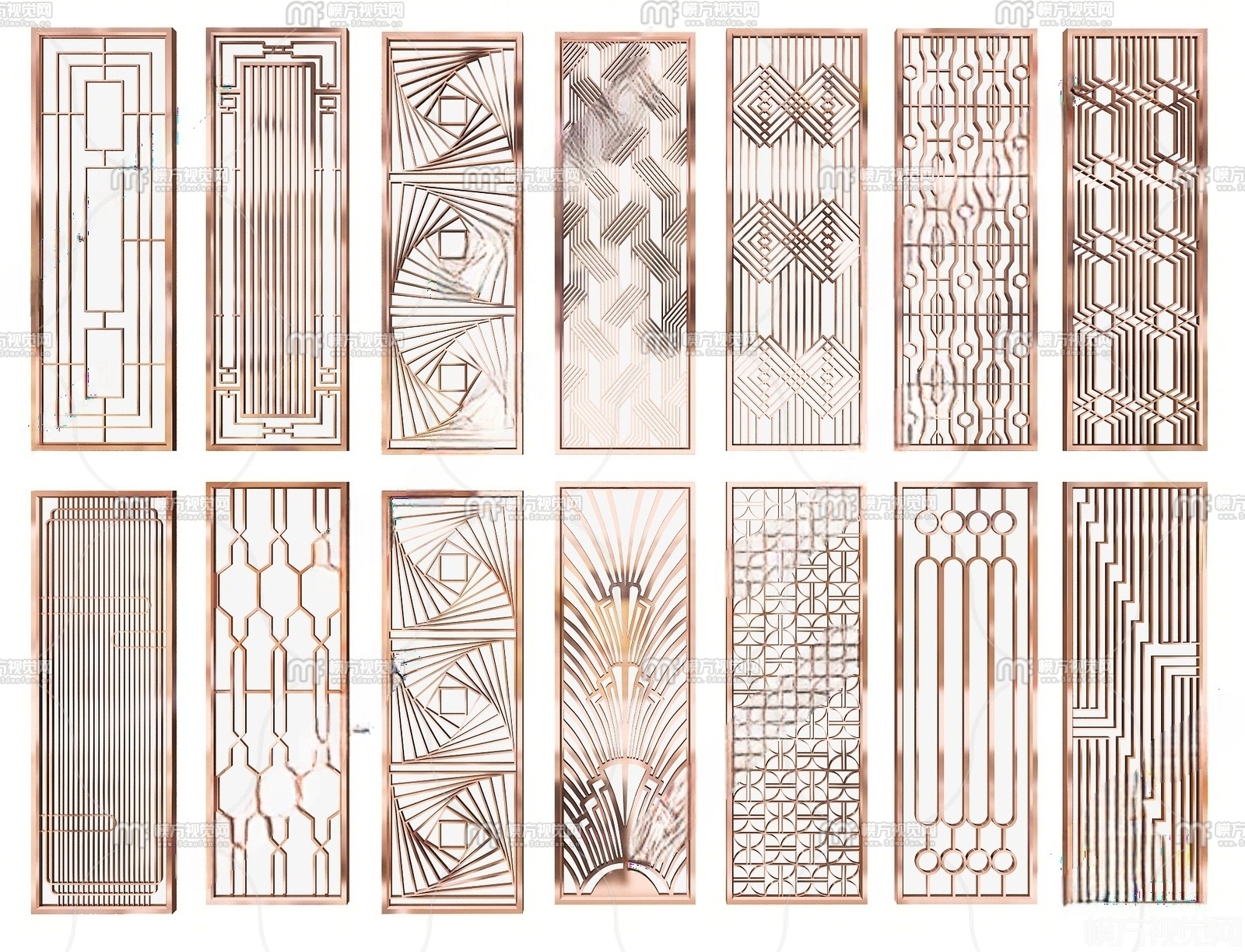 新中式花格屏风隔断组合3D模型(ID:0036887)