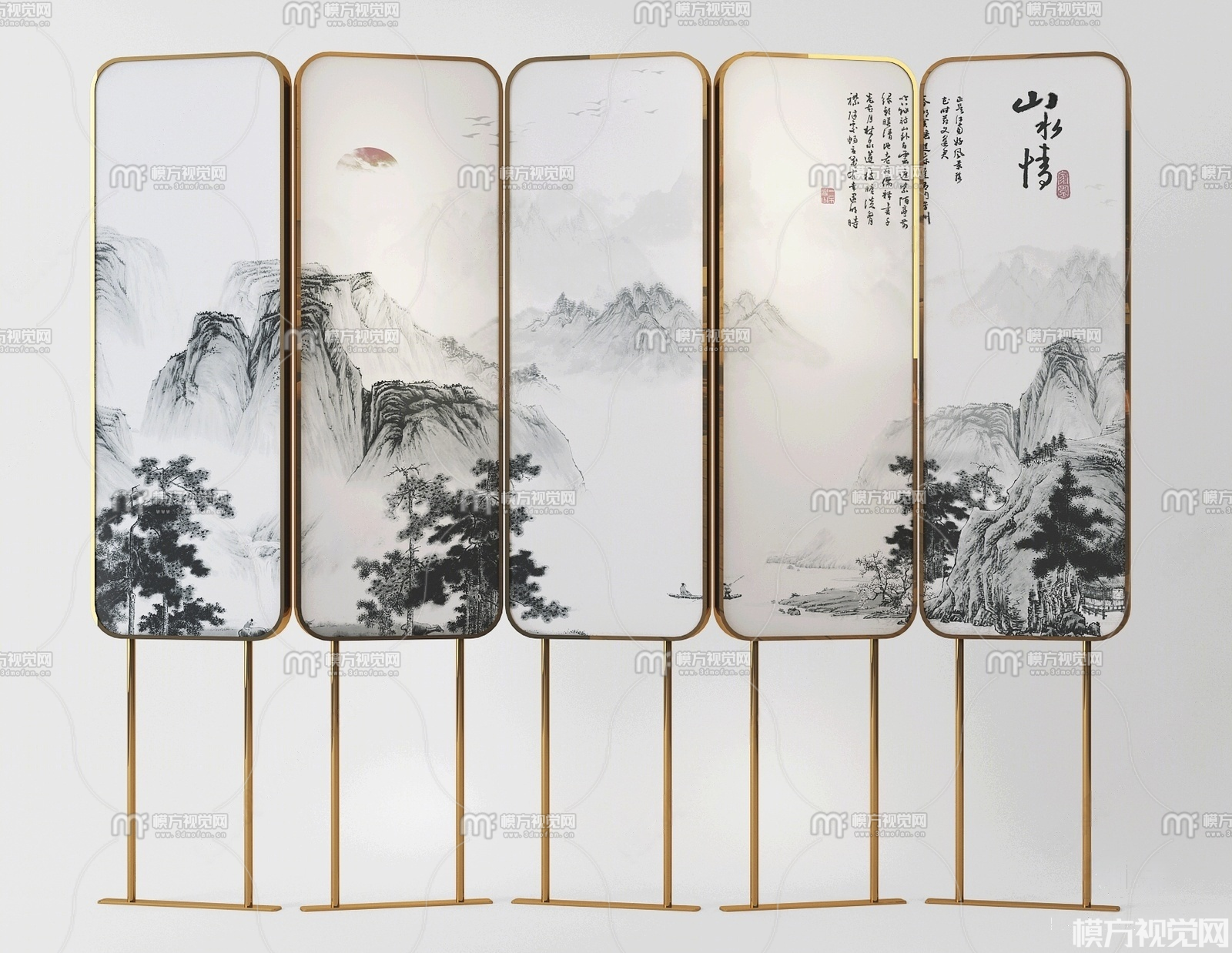 新中式屏风隔断背景墙3D模型(ID:0036896)
