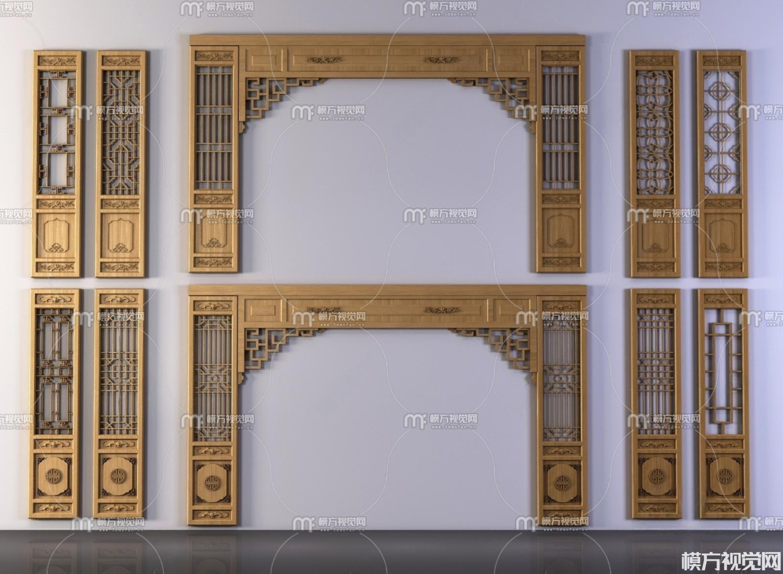 中式屏风隔断拱门组合3D模型(ID:0036910)