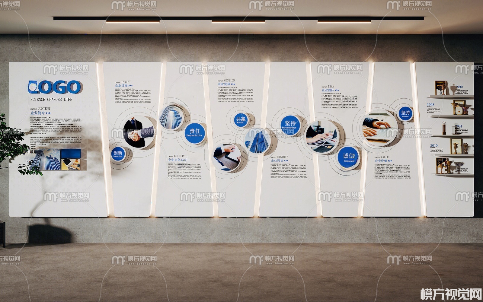 现代企业文化墙3D模型(ID:0036913)