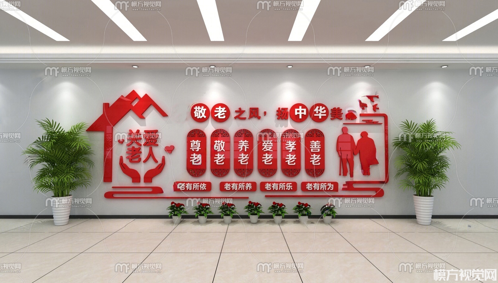 现代养老文化墙3D模型(ID:0036932)