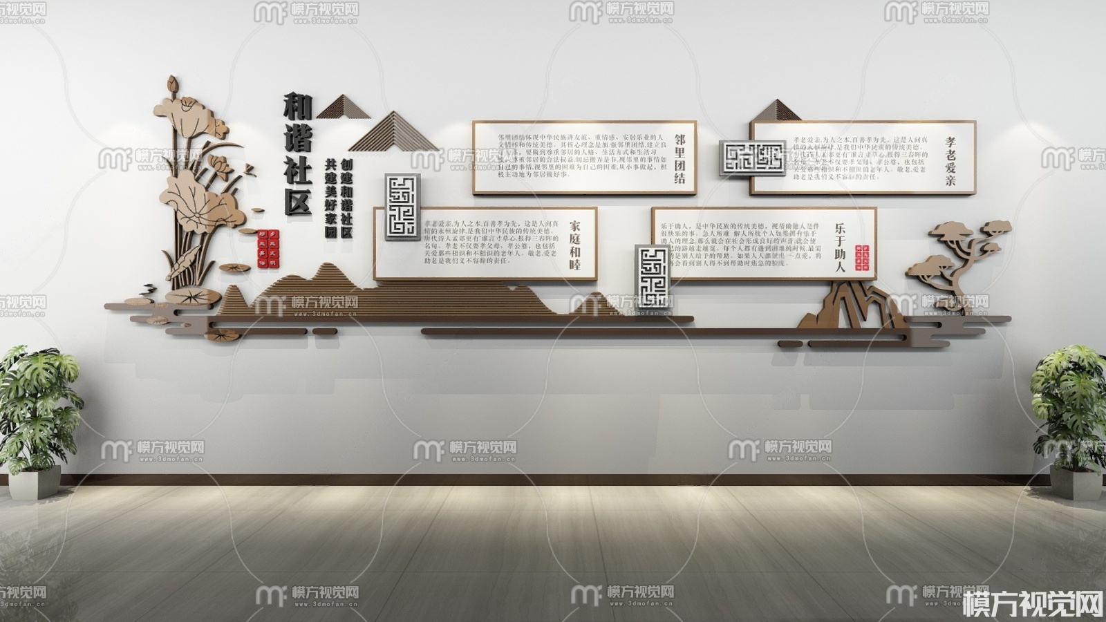 新中式社区文化墙3D模型(ID:0036940)