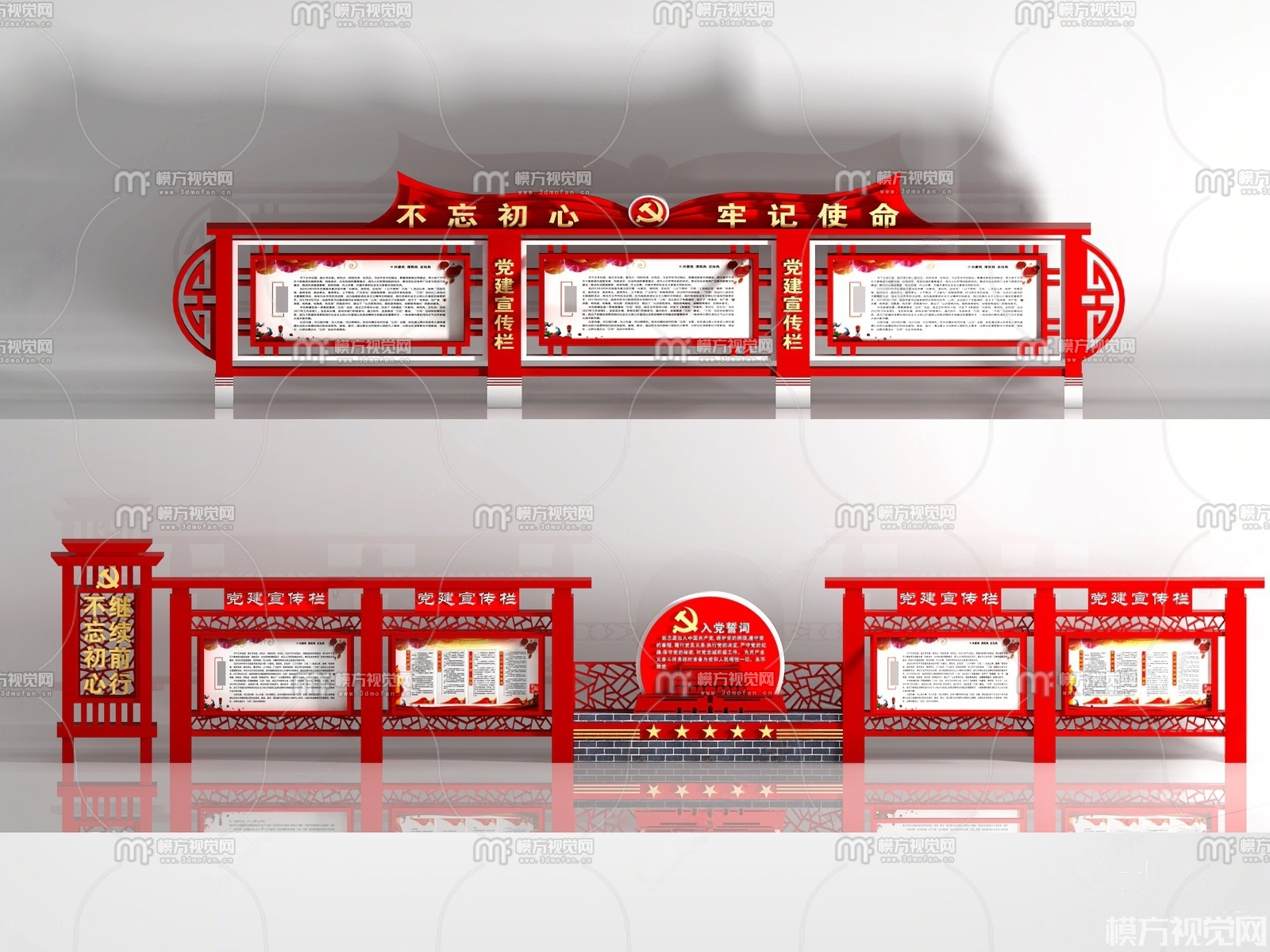 新中式文化宣传栏组合3D模型(ID:0036941)
