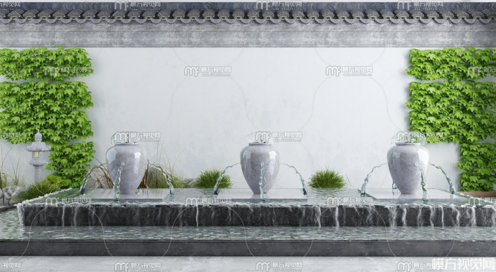 新中式庭院假山景观小品3D模型(ID:0037151)
