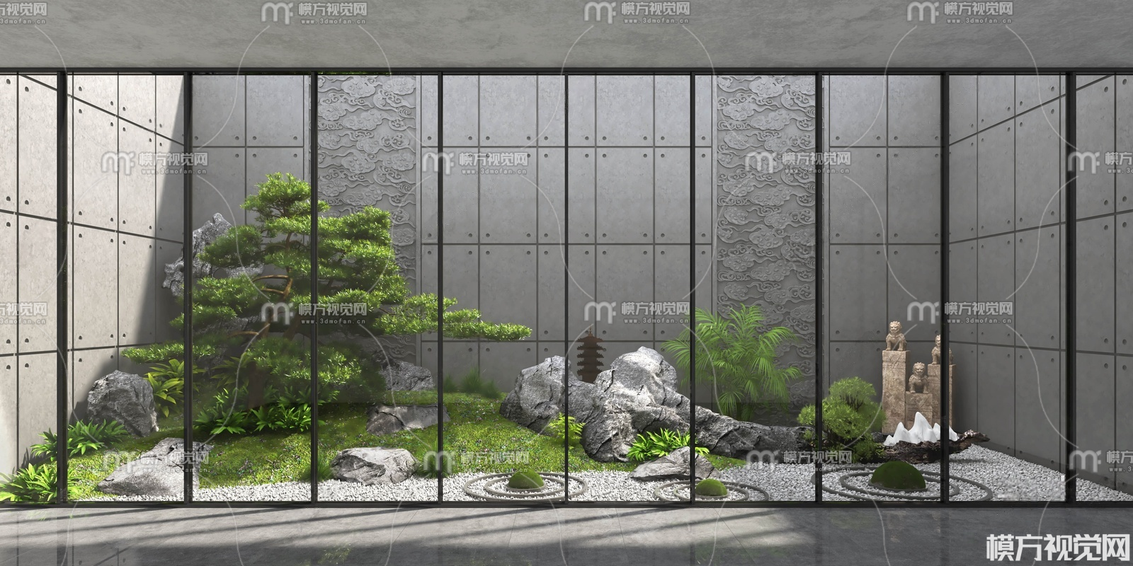新中式庭院景观3D模型(ID:0037154)