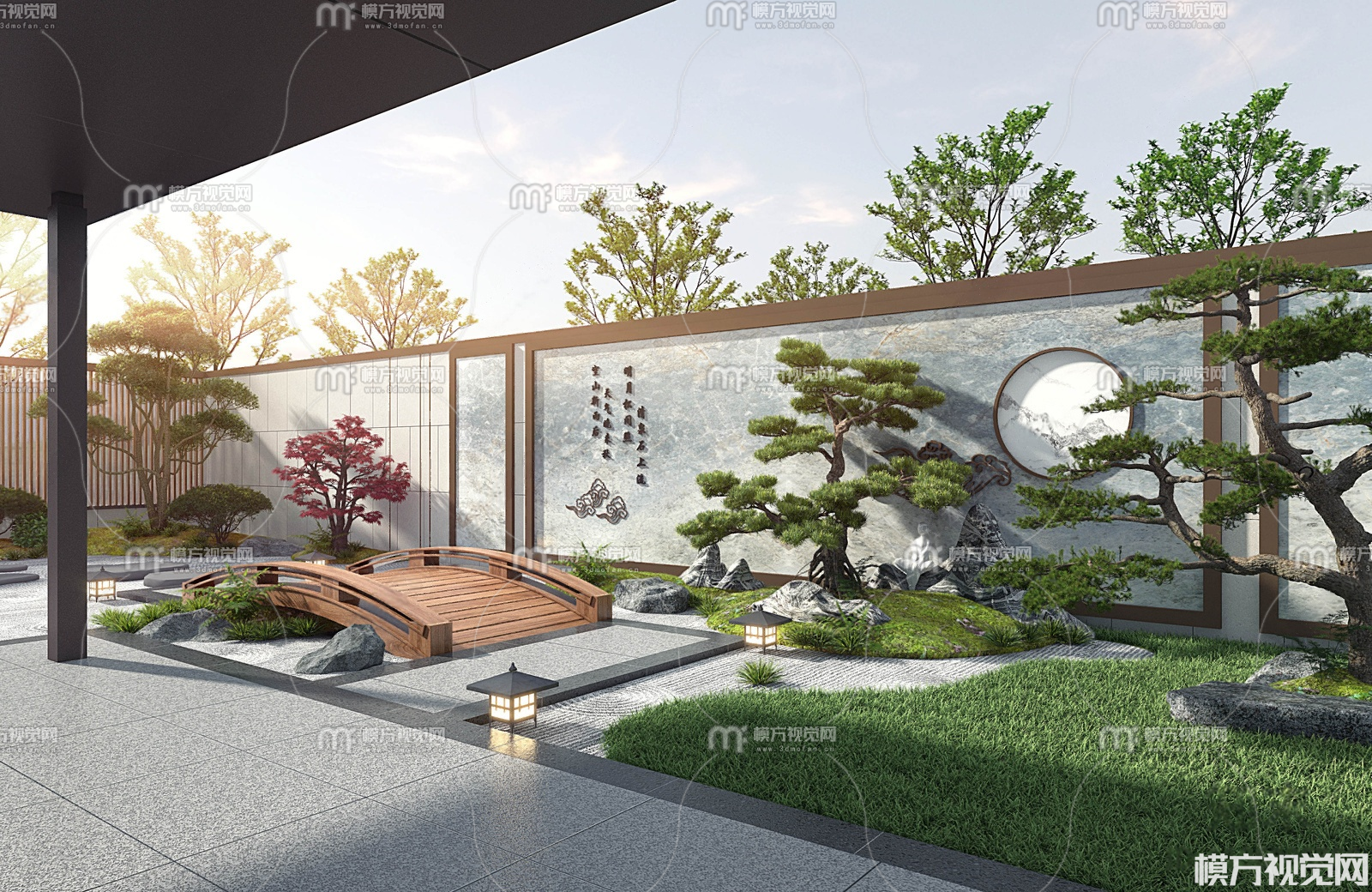 新中式庭院景观3D模型(ID:0037159)
