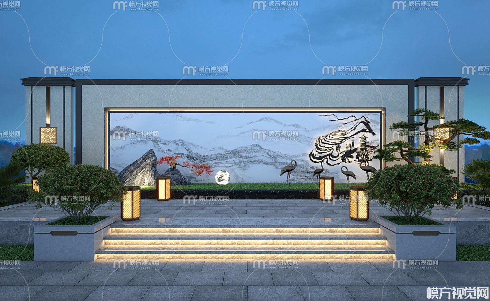 新中式庭院景观3D模型(ID:0037161)