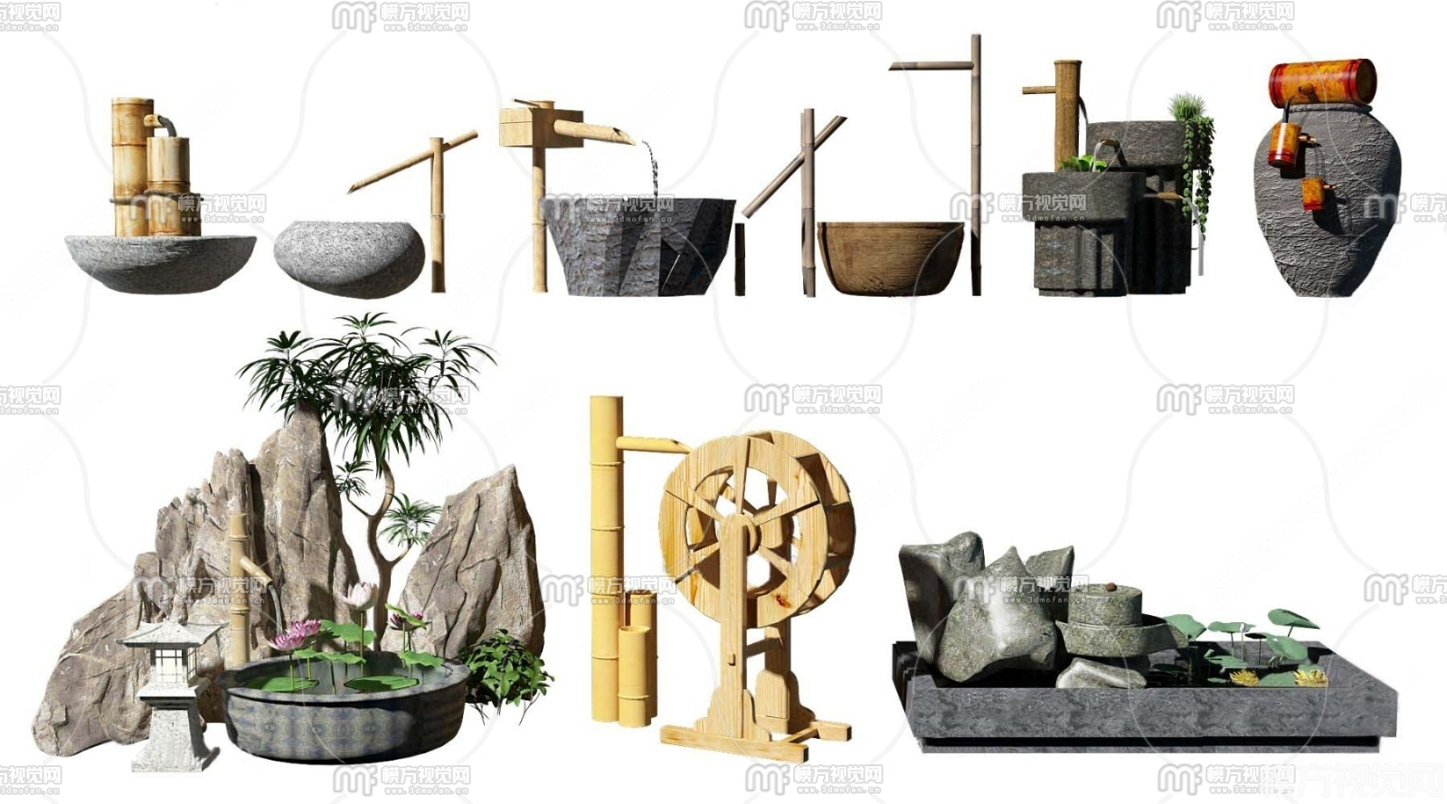 新中式竹筒流水园艺小品园艺小品3D模型(ID:0037173)