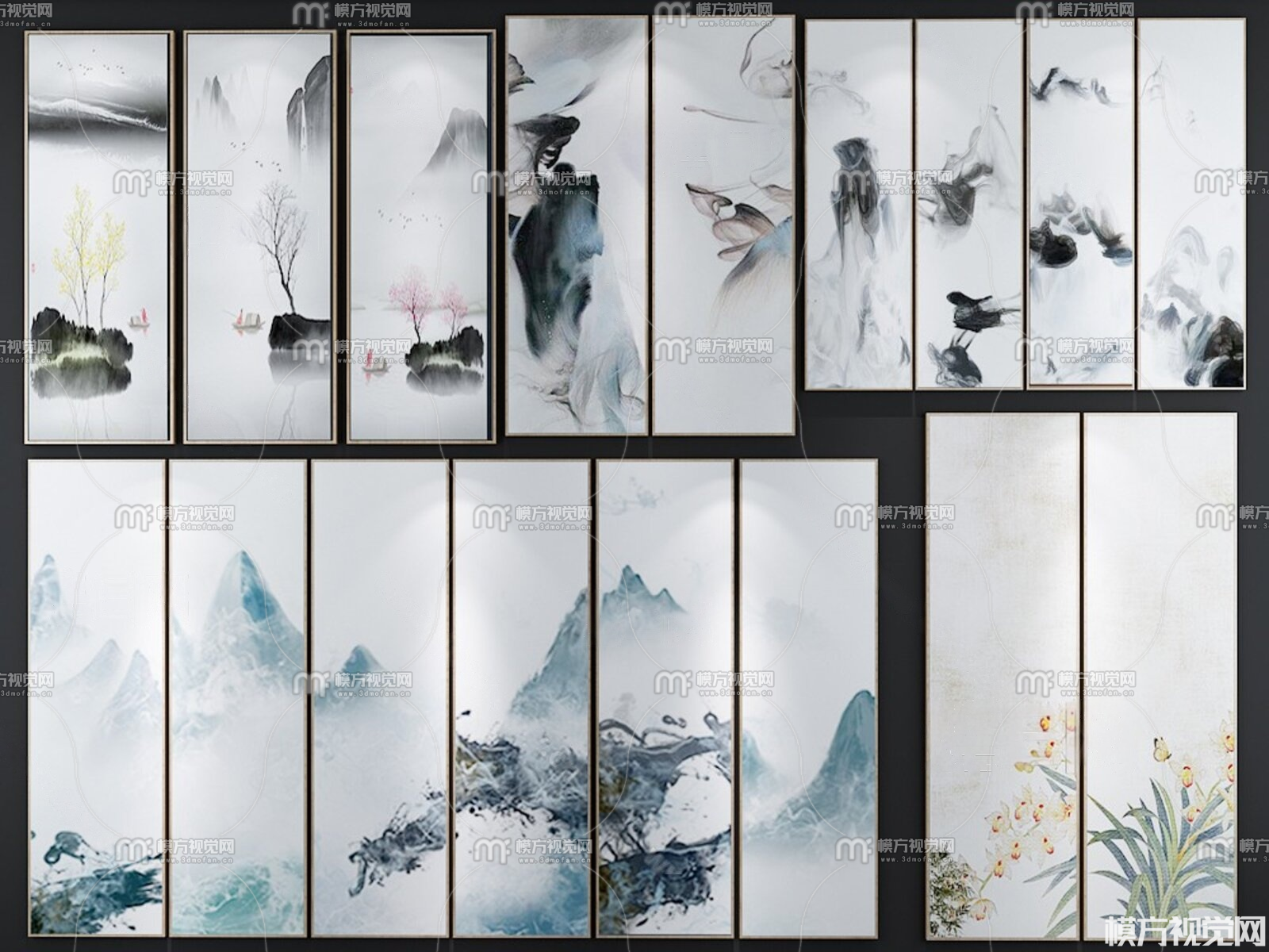 新中式挂画组合3D模型(ID:0037307)