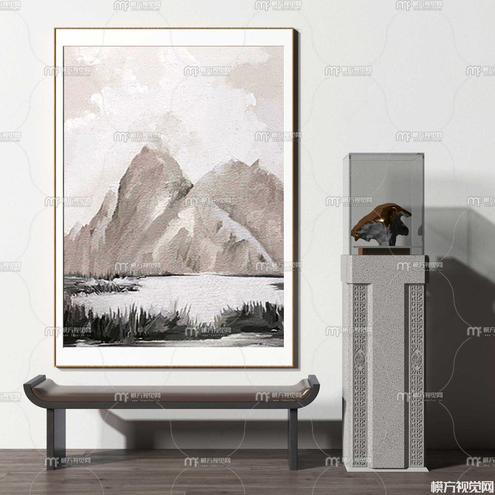 新中式山水装饰画挂画3D模型(ID:0037316)
