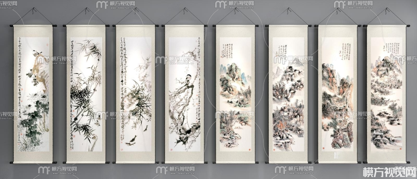 梅兰竹菊卷轴挂画3D模型(ID:0037358)