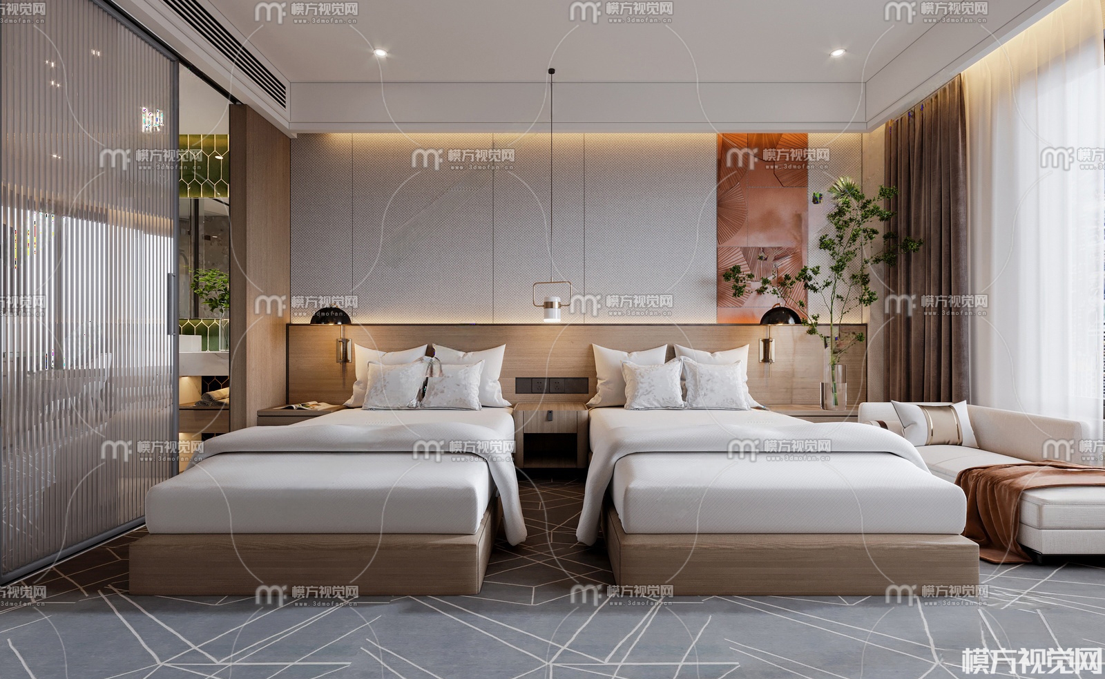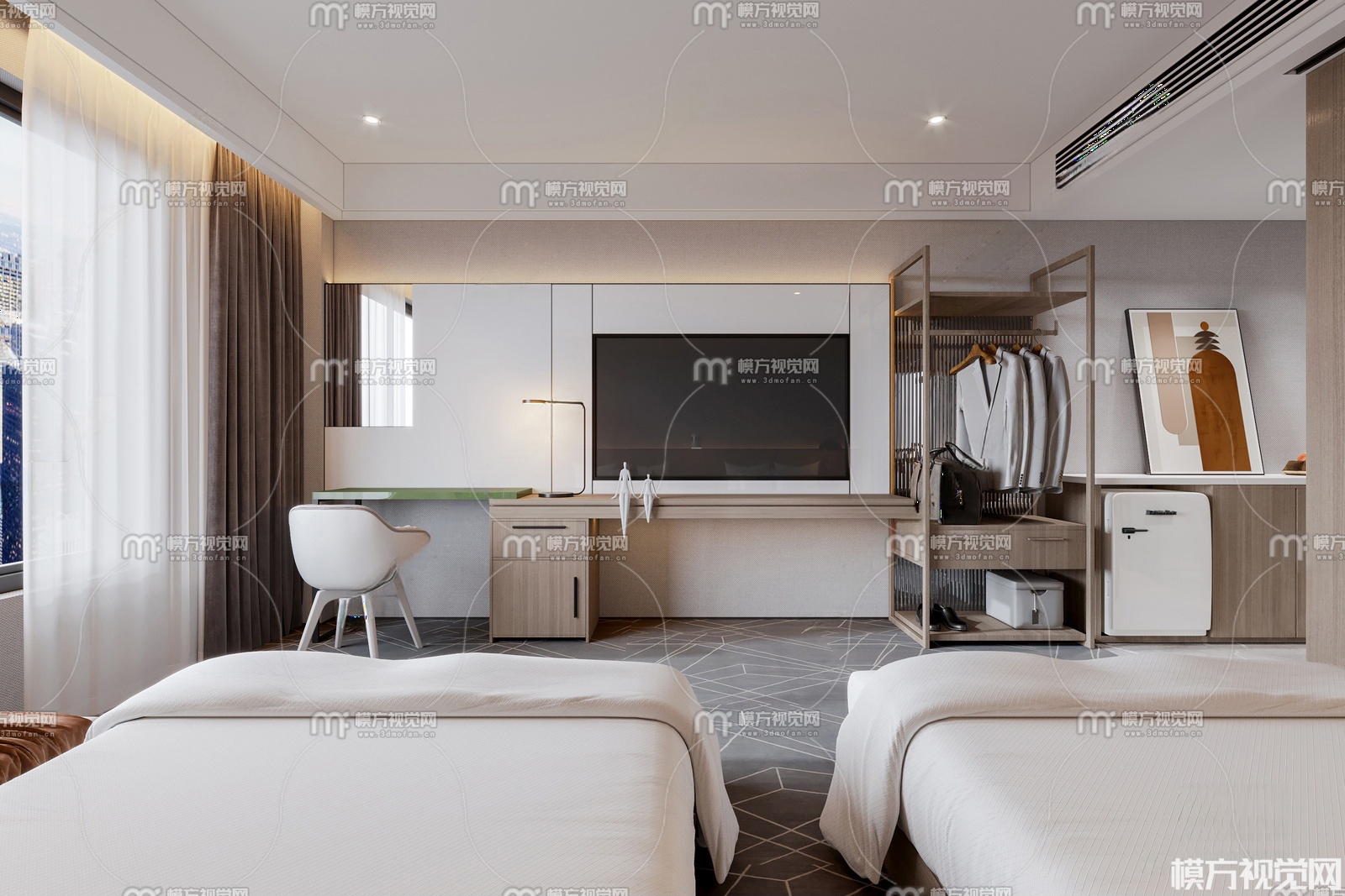 现代酒店客房3D模型(ID:0037372)