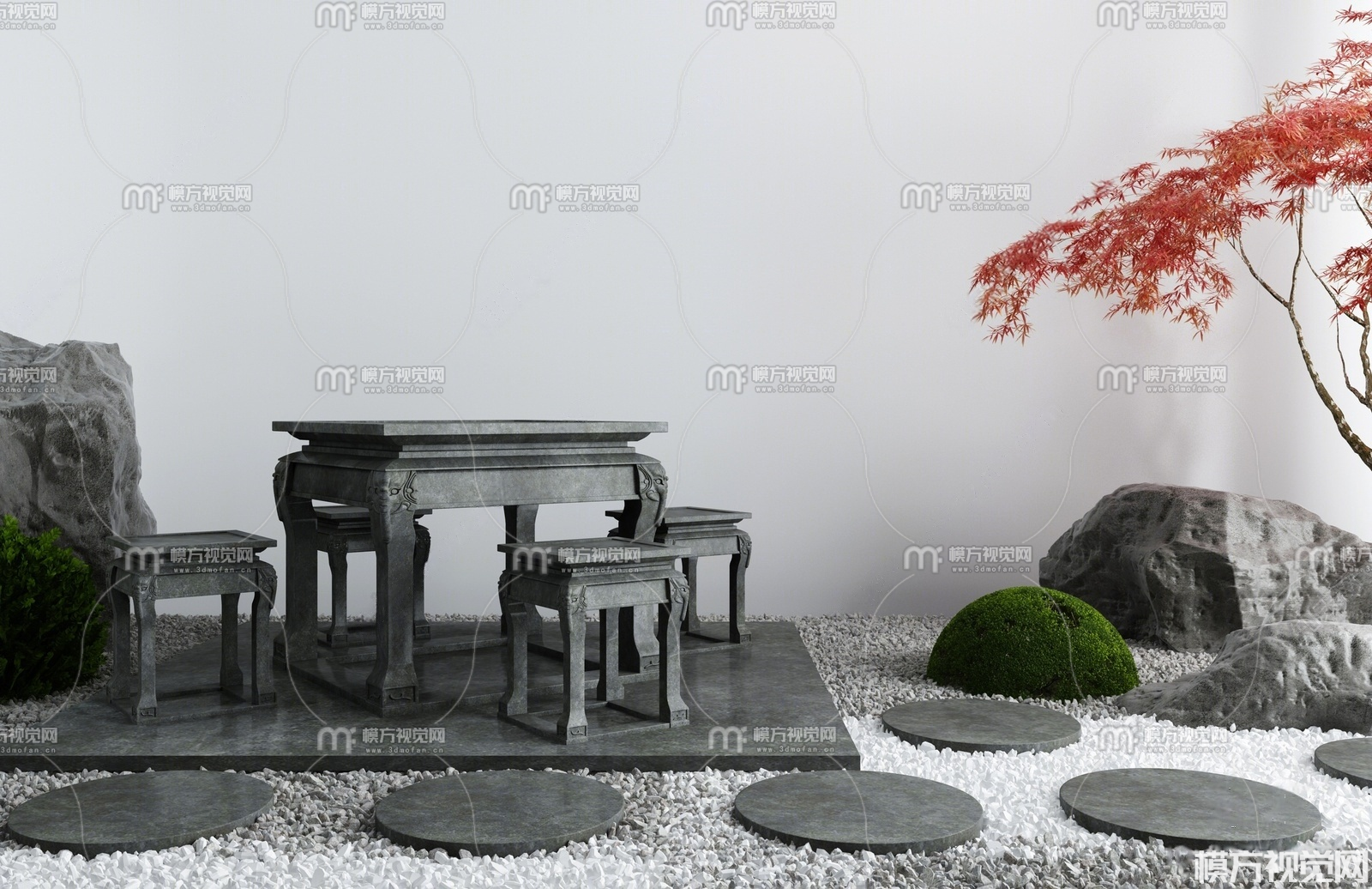 新中式庭院休闲石凳桌椅3D模型(ID:0037435)