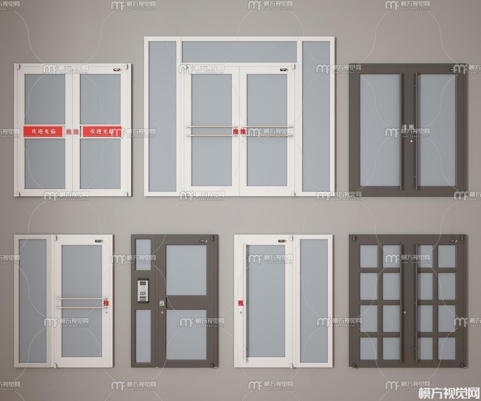商业门店玻璃推拉门3D模型(ID:0003744)