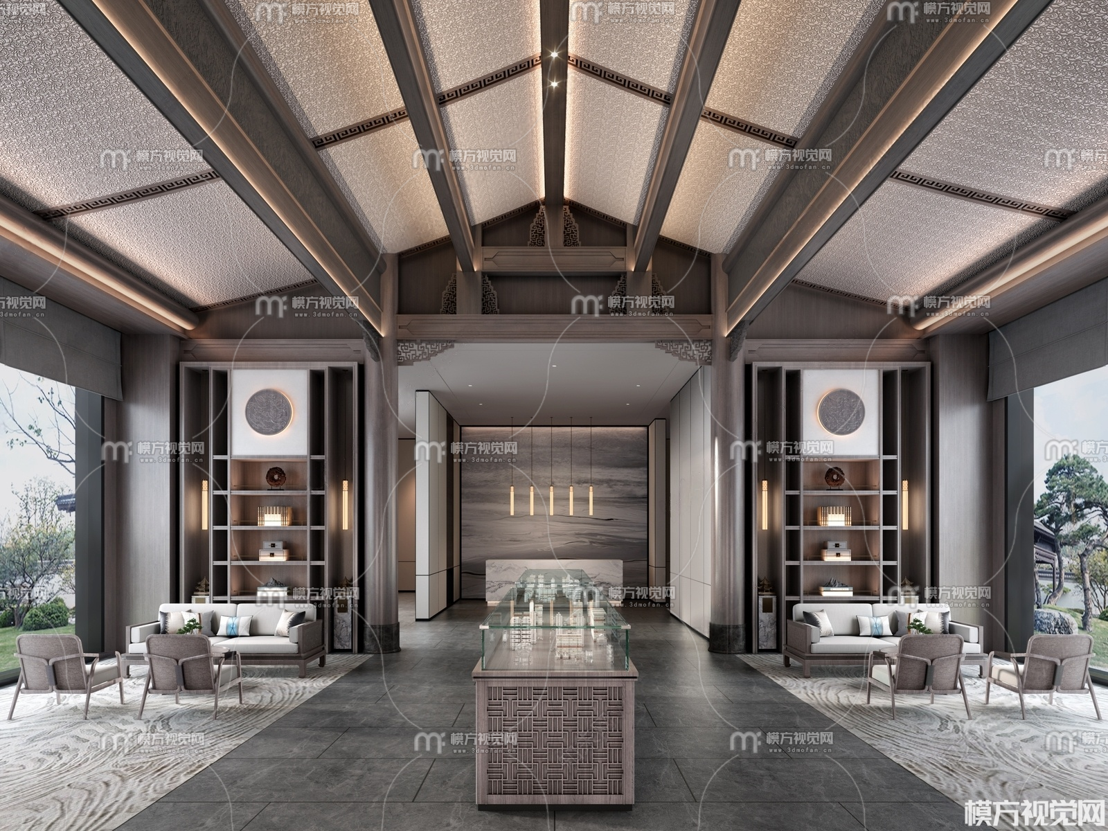 新中式售楼处洽谈区3D模型(ID:0037490)