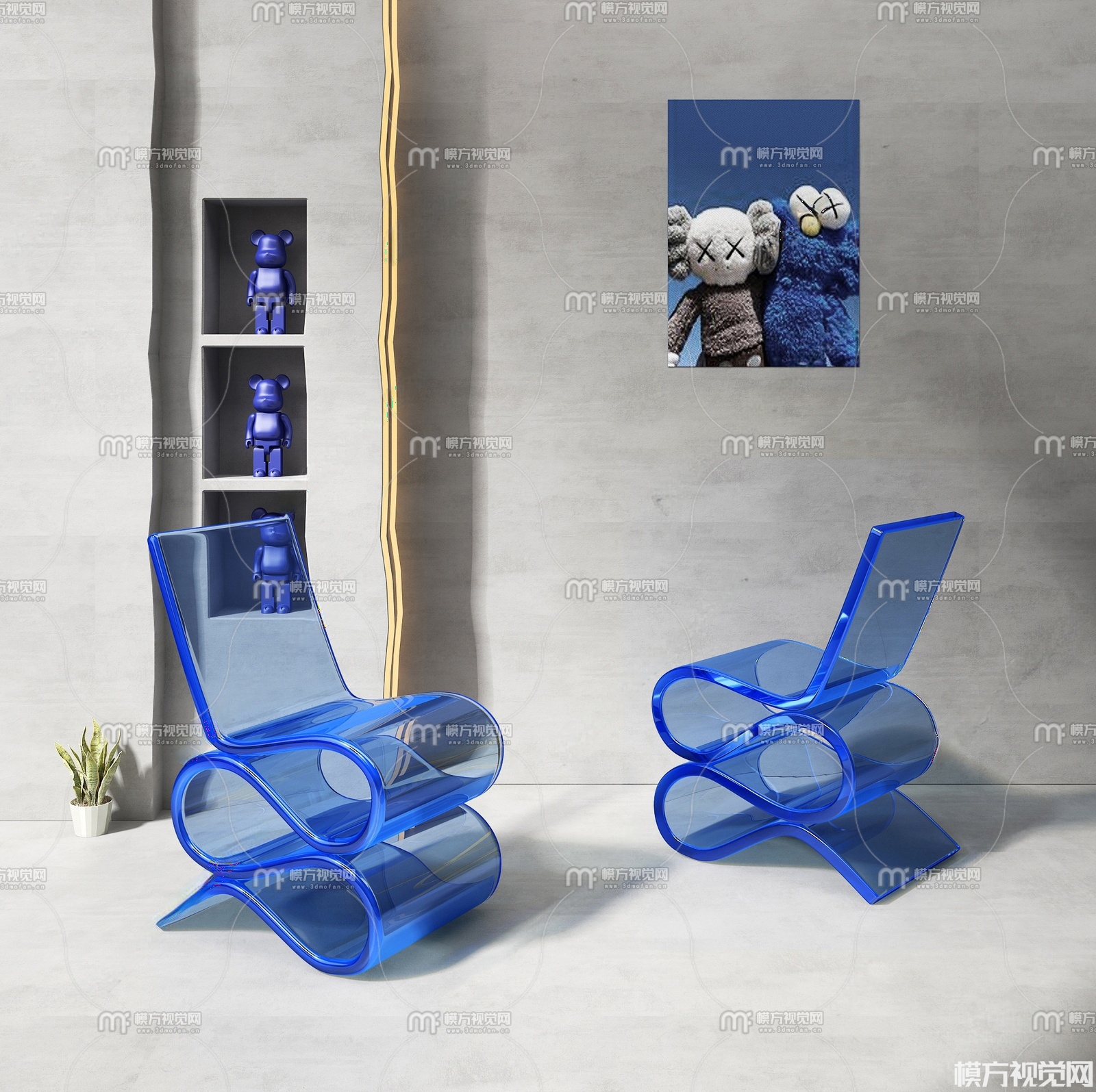 现代克莱因蓝休闲椅子组合3D模型(ID:0037575)