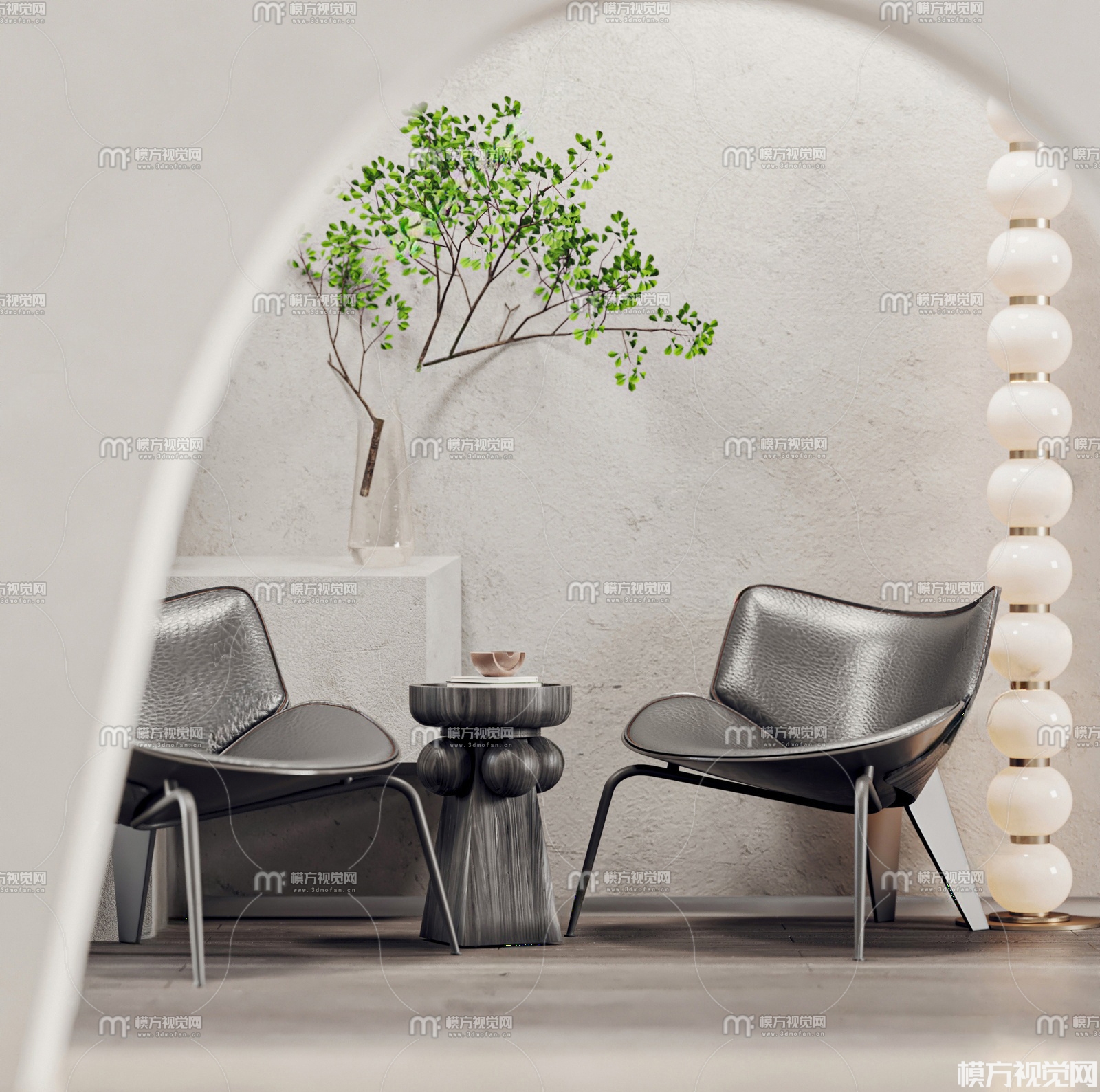 现代皮革休闲椅组合3D模型(ID:0037577)