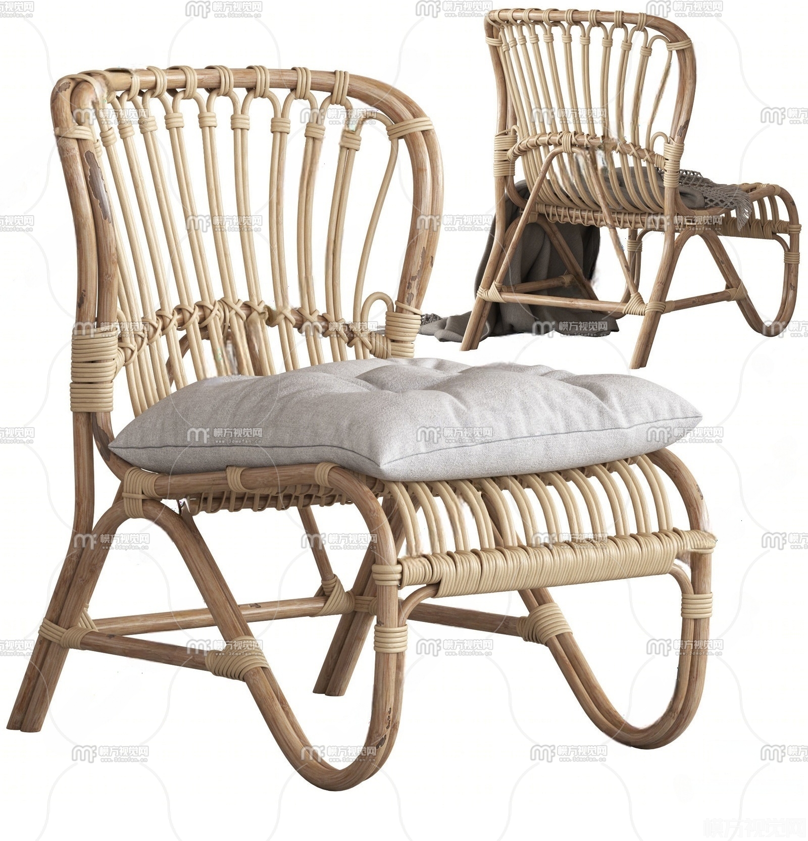 现代藤编休闲椅组合3D模型(ID:0037643)