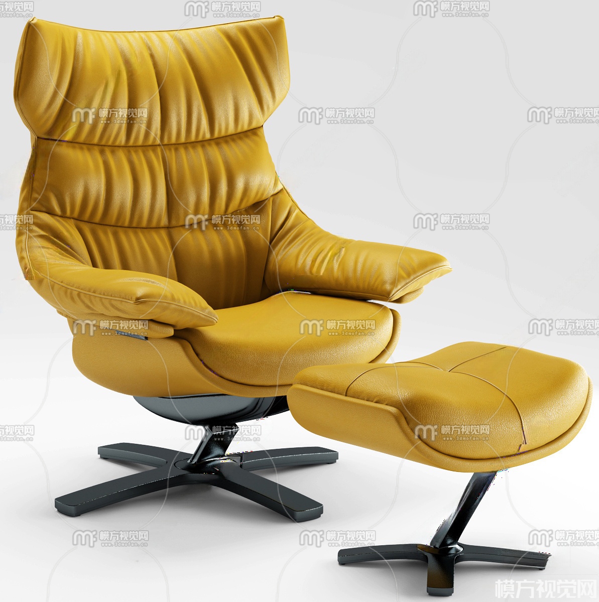 现代休闲椅脚凳组合3D模型(ID:0037679)