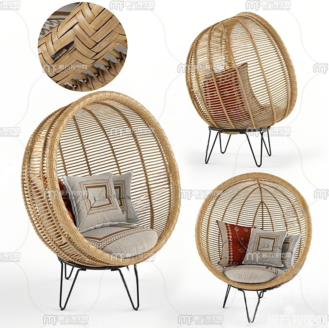 现代圆形藤茧休闲椅3D模型(ID:0037704)