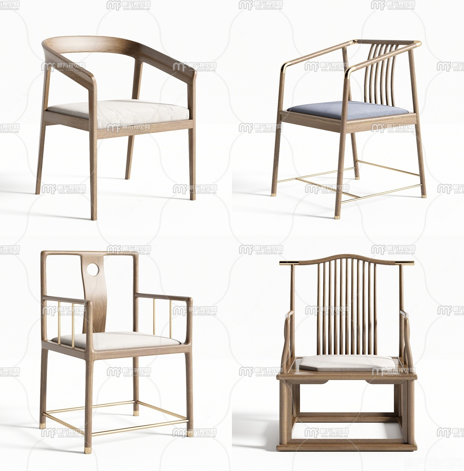 新中式休闲椅组合3D模型(ID:0037715)