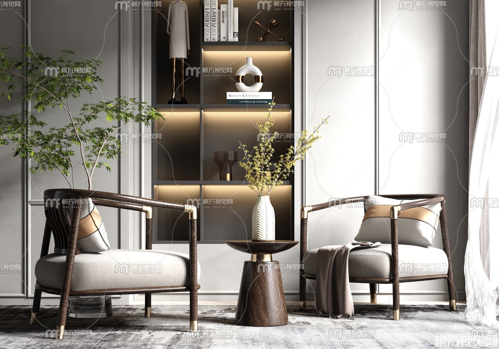 新中式休闲椅组合3D模型(ID:0037716)