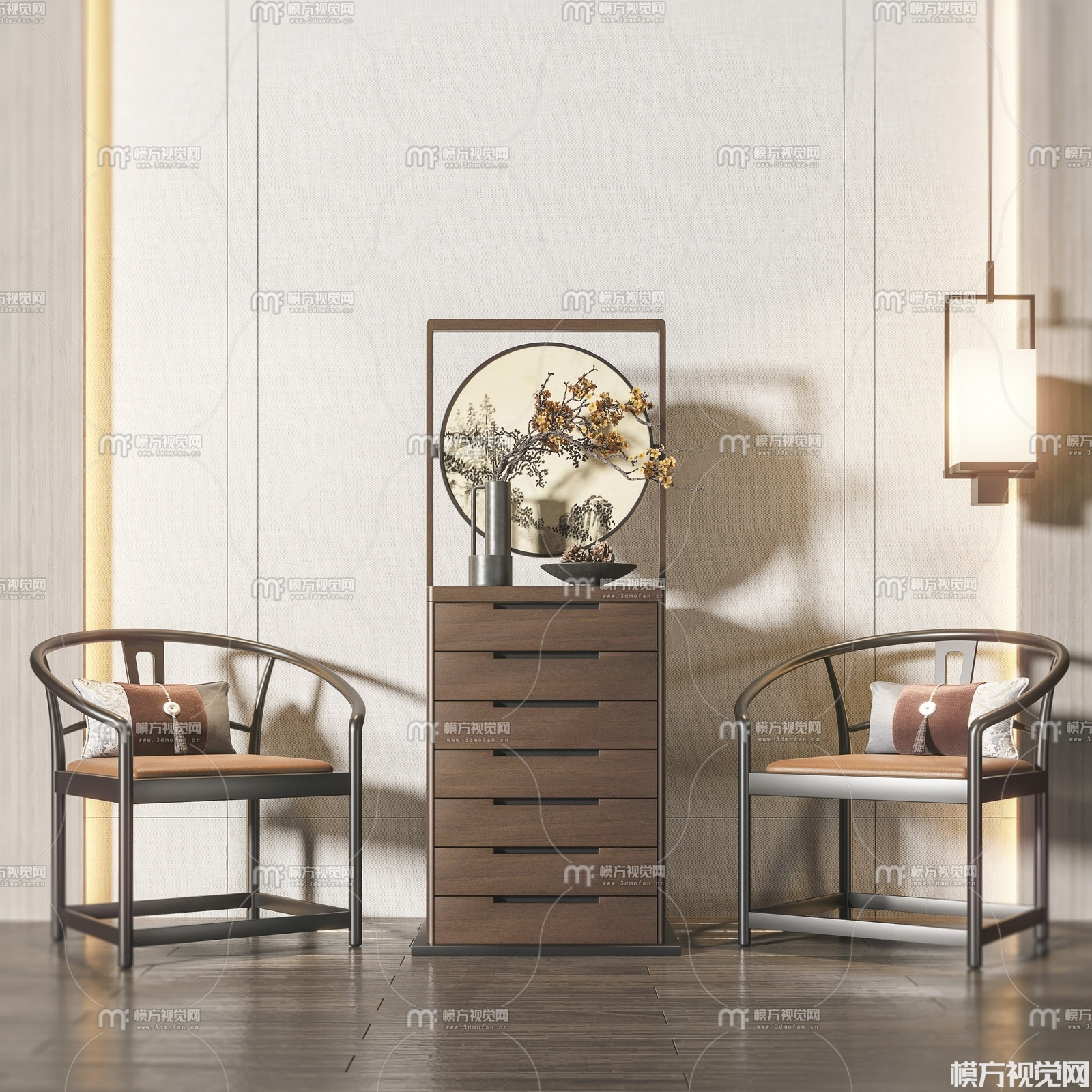 新中式休闲椅组合3D模型(ID:0037719)