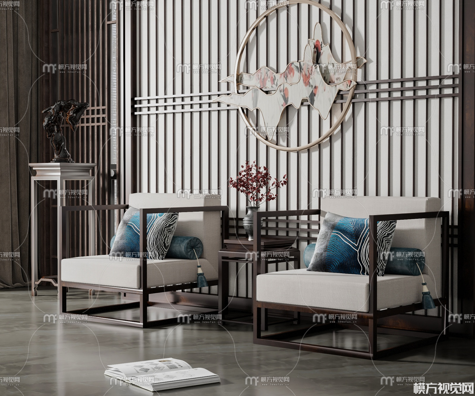 新中式休闲椅组合3D模型(ID:0037721)
