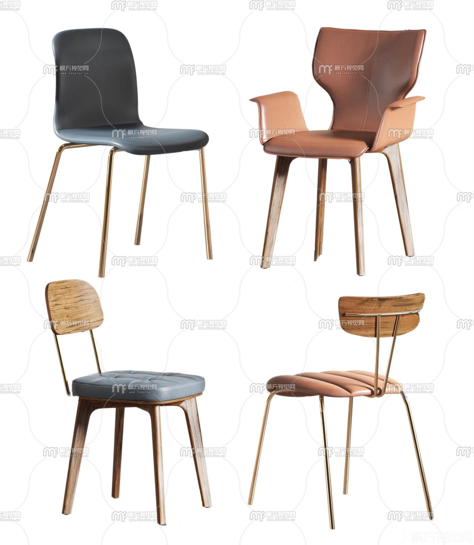 现代皮革单椅组合3D模型(ID:0037758)