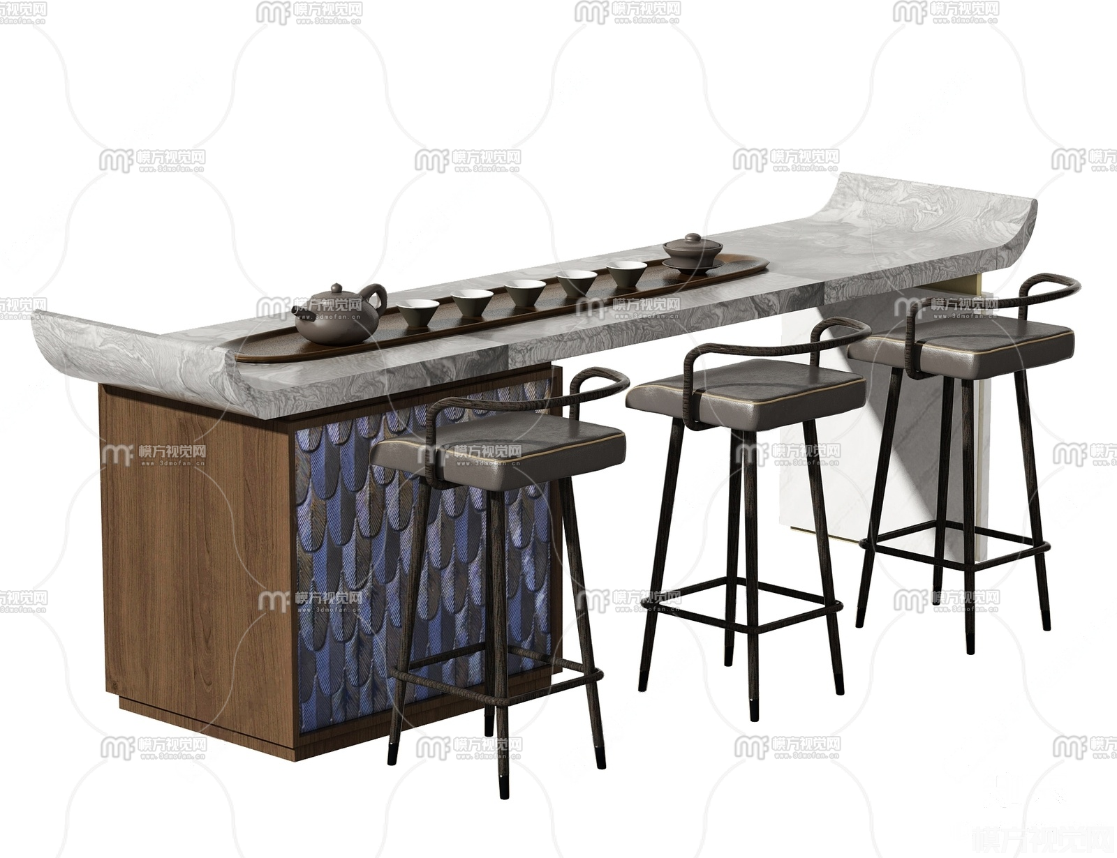 新中式吧台吧椅组合3D模型(ID:0037789)