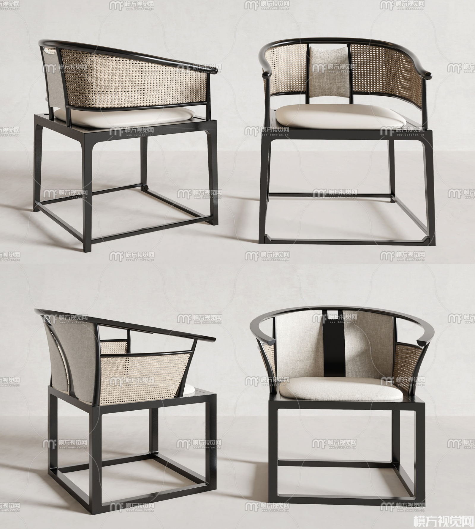 新中式实木圈椅3D模型(ID:0037802)