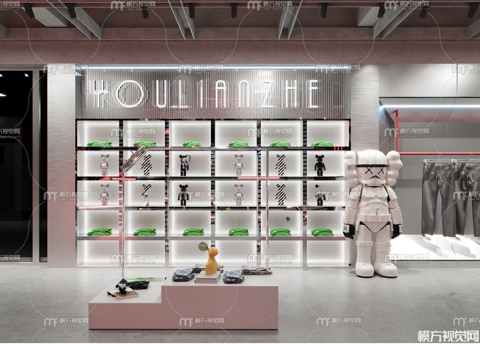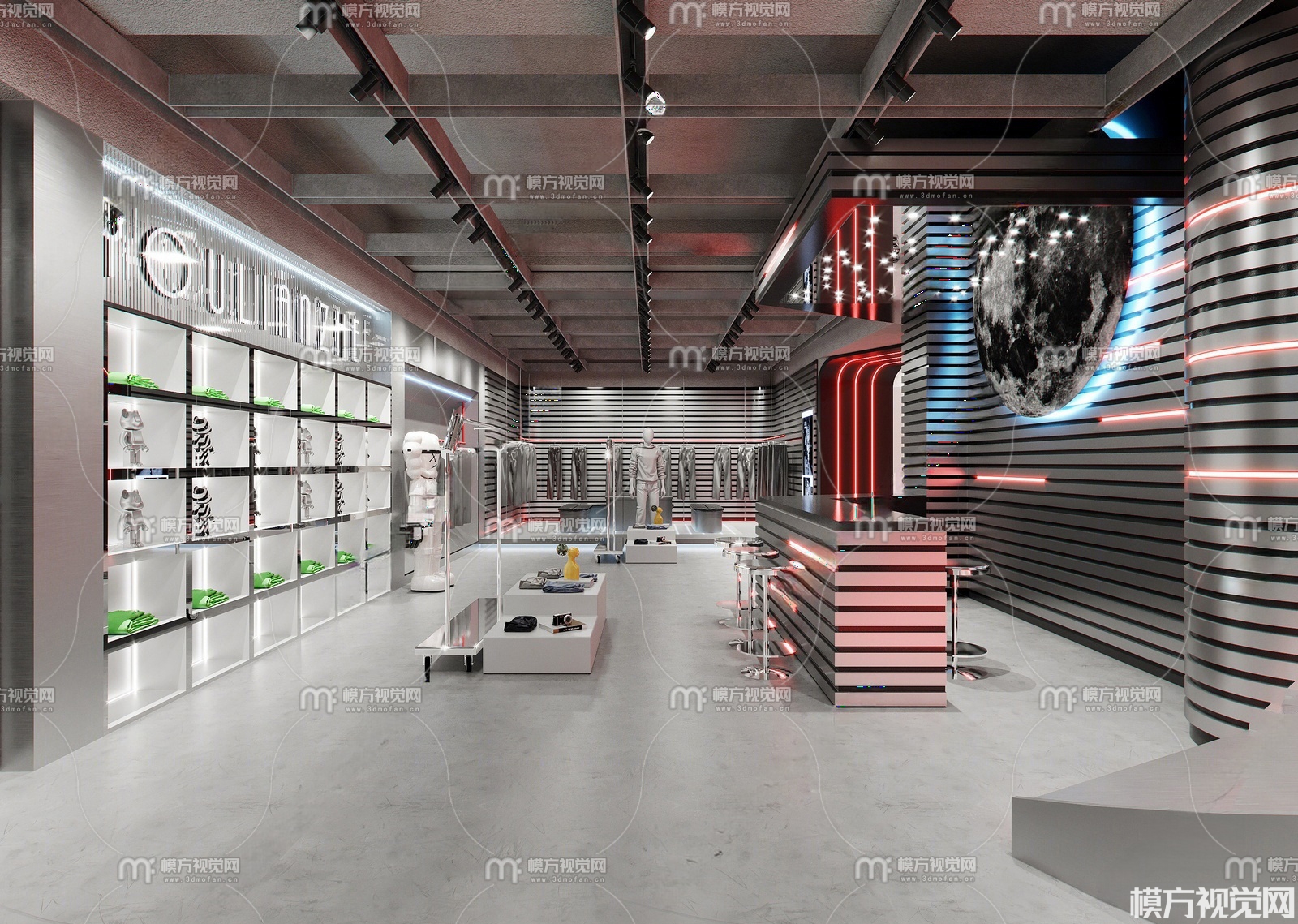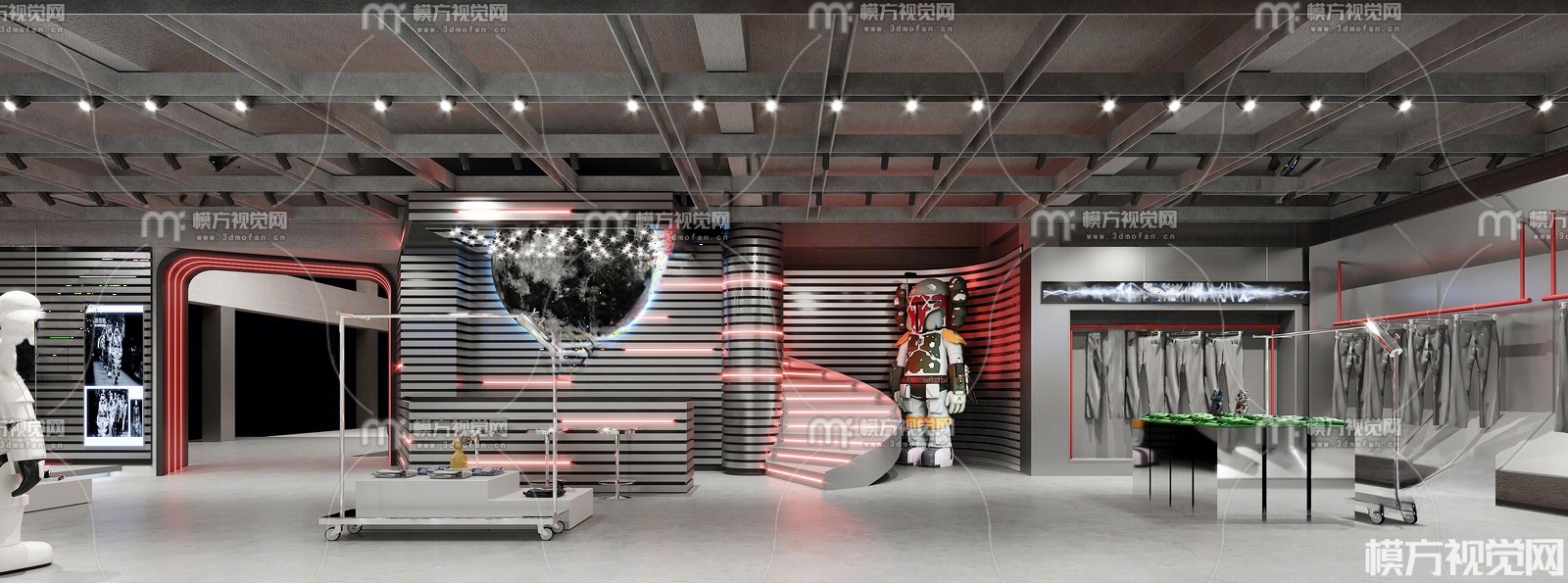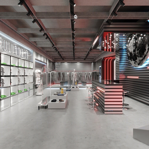 现代科技风男装服装店3D模型(ID:0037866)