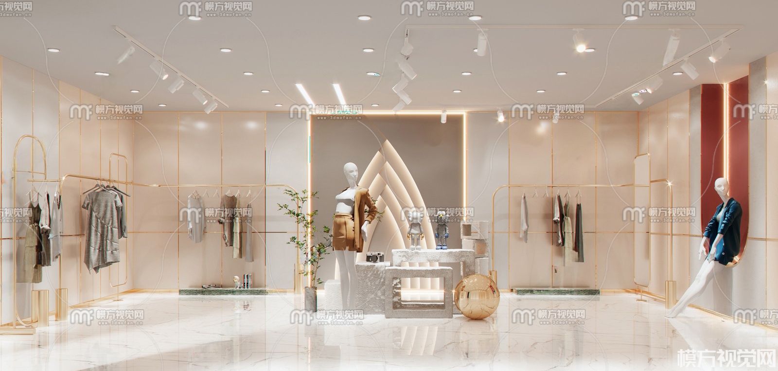 现代轻奢女装店服装店3D模型(ID:0037882)