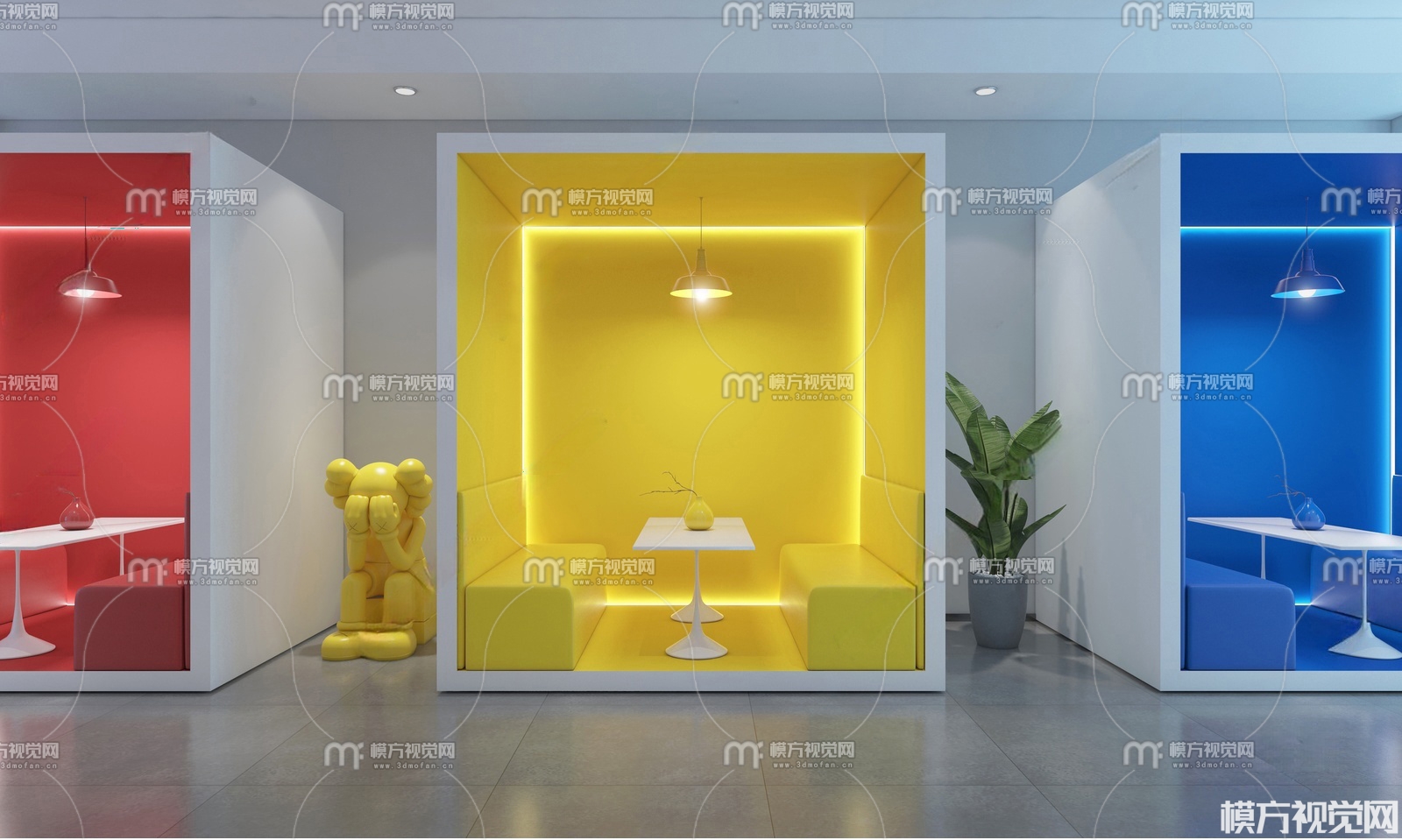 现代奶茶店咖啡店包厢3D模型(ID:0037889)