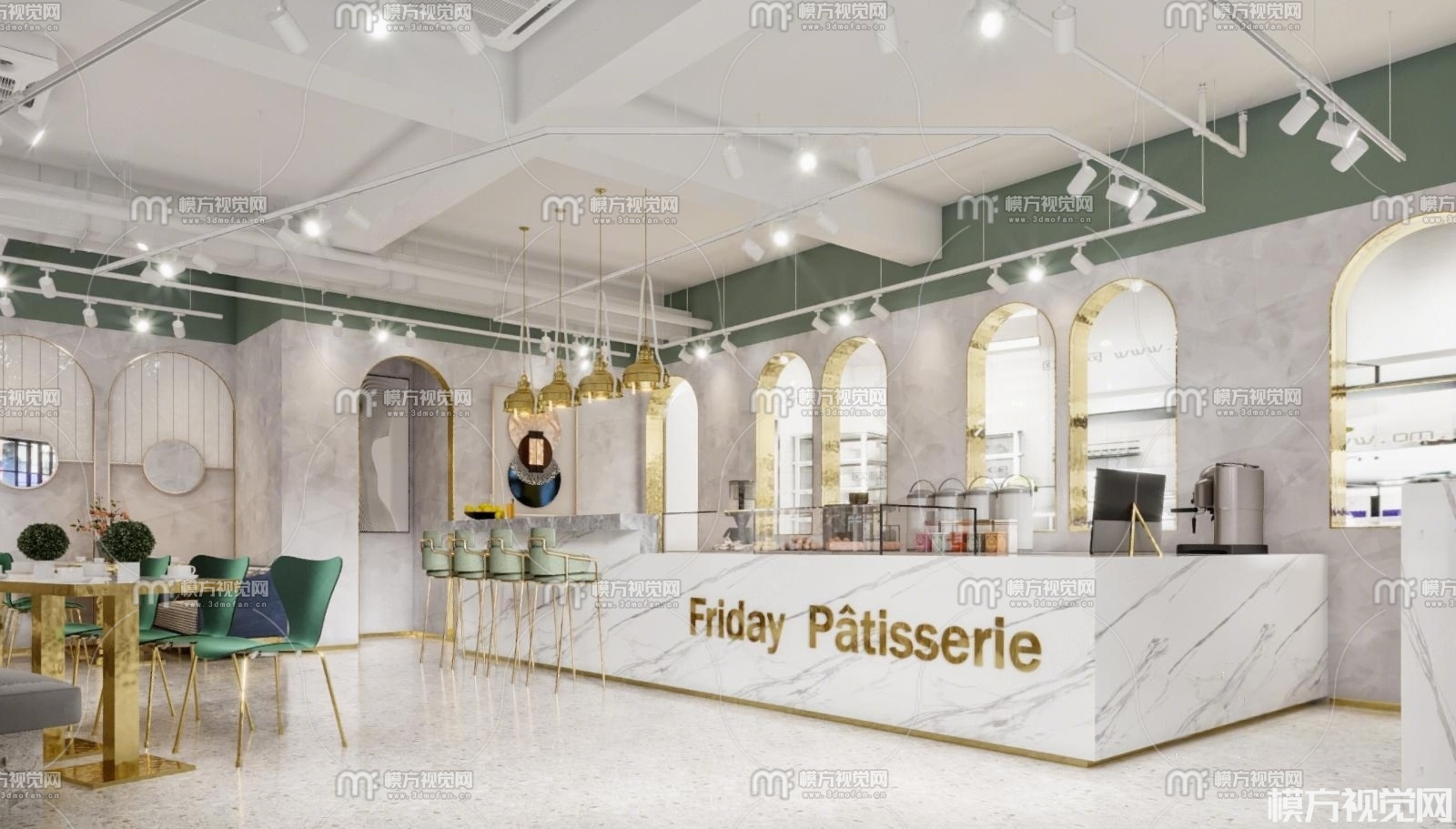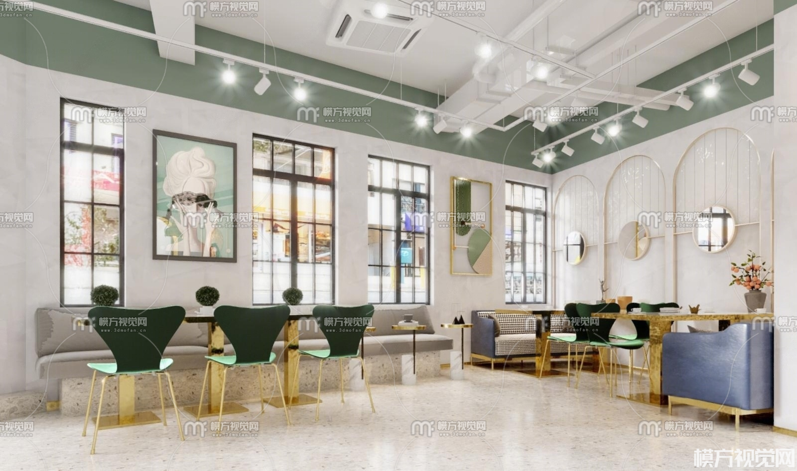 现代奶茶店 甜品店3D模型(ID:0037892)