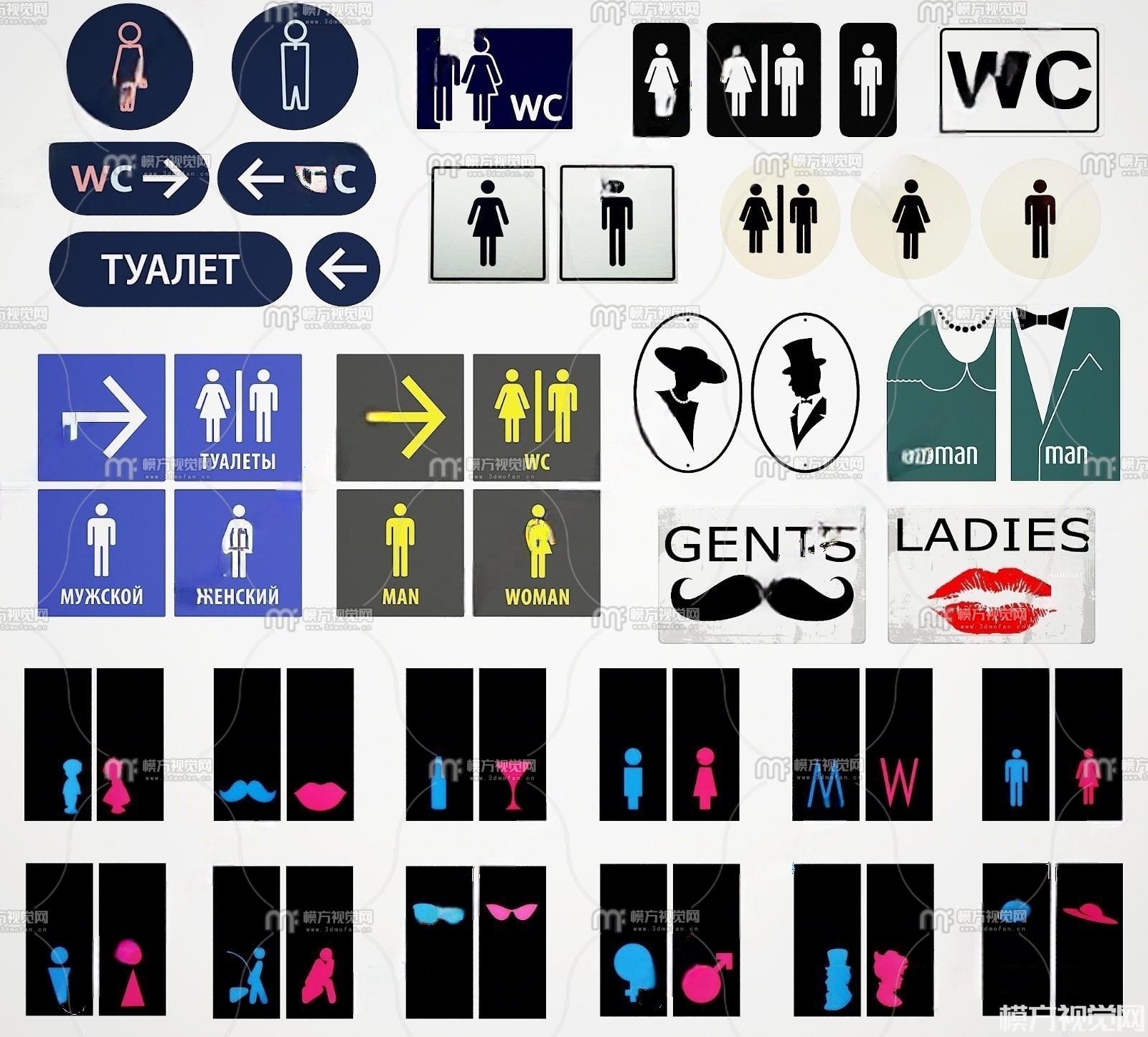 现代卫生间标识牌指示牌3D模型(ID:0037997)