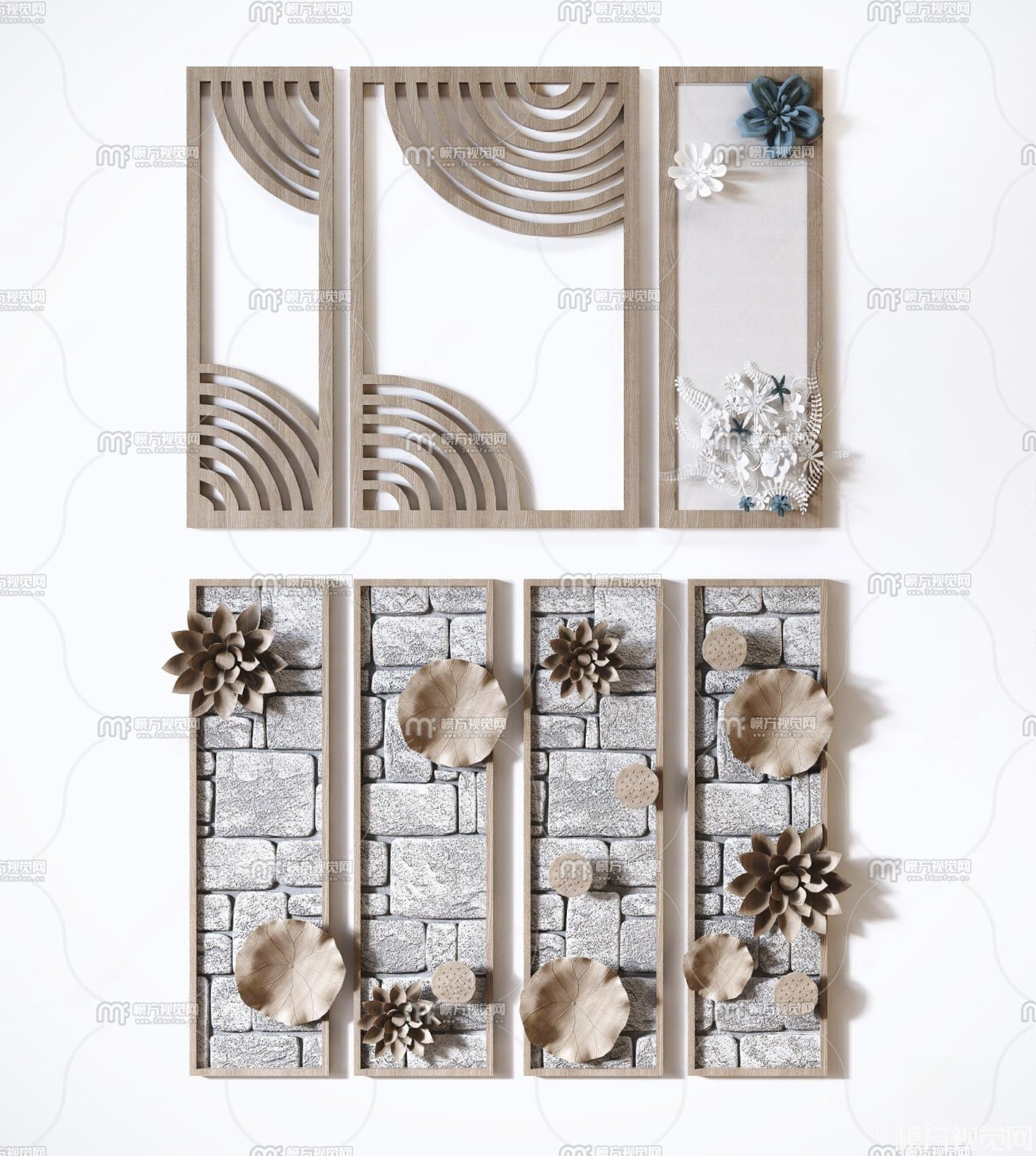 新中式禅意荷花荷叶墙饰挂件3D模型(ID:0038017)