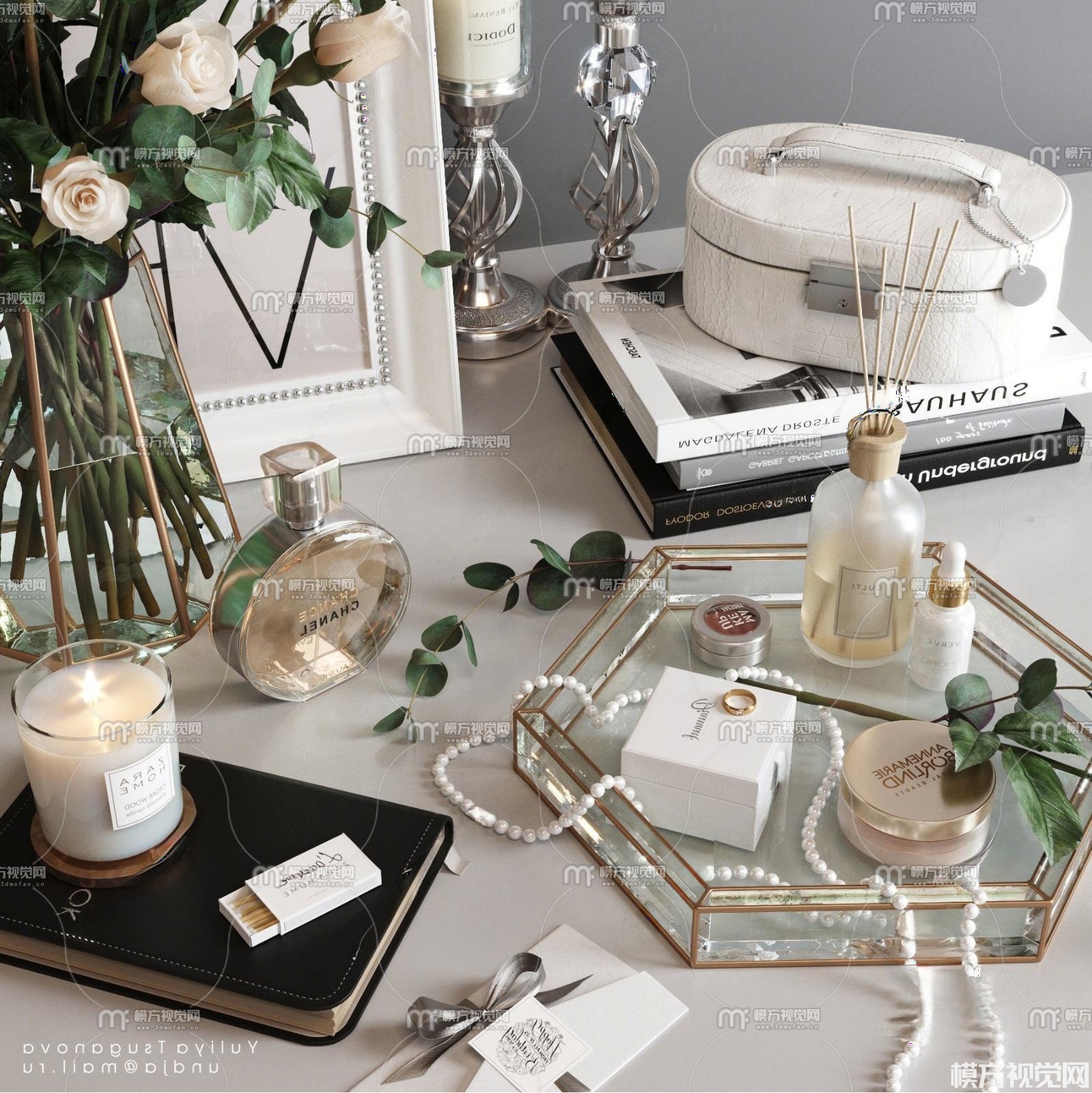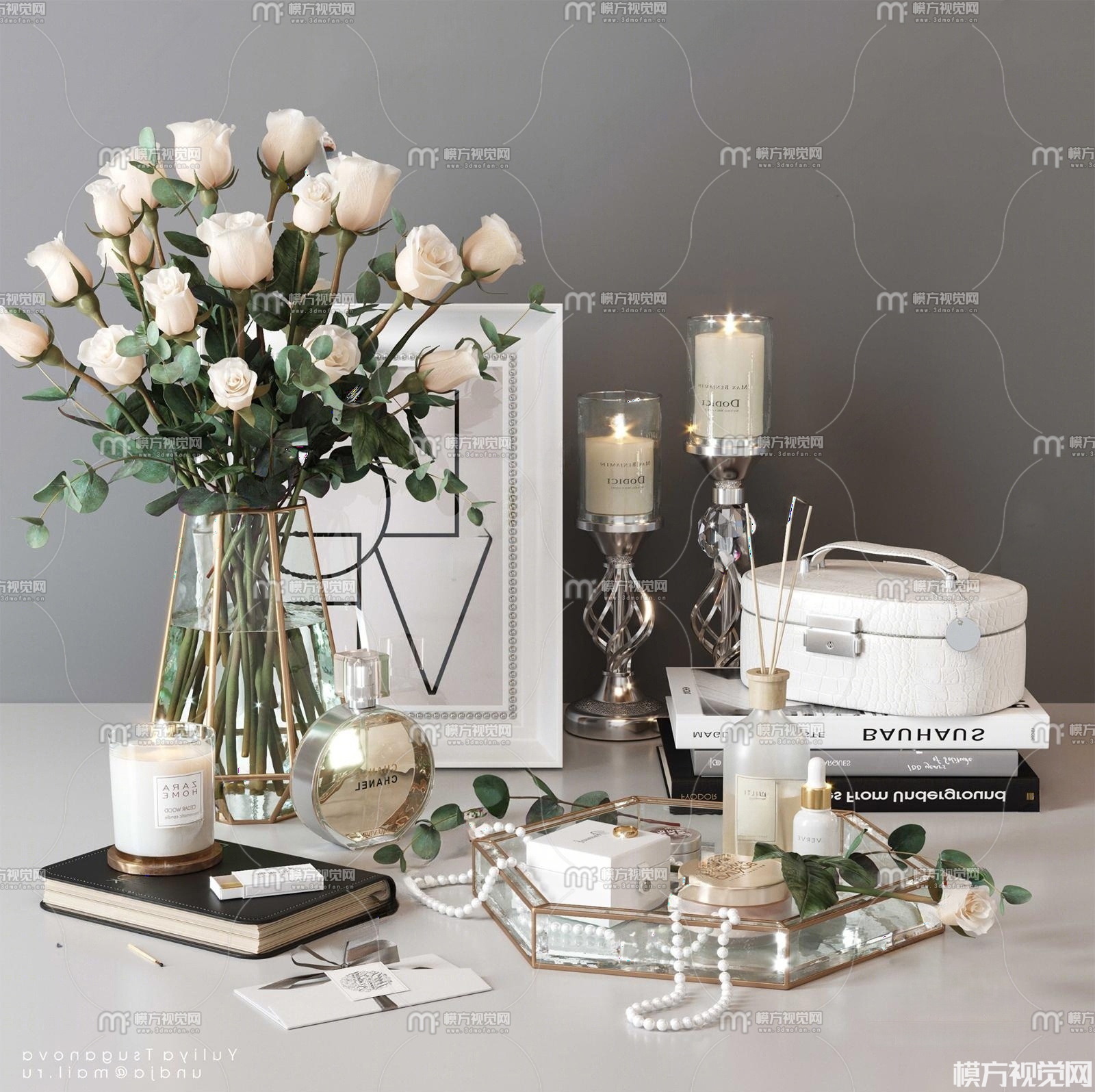 现代花卉烛台饰品摆件3D模型(ID:0038022)