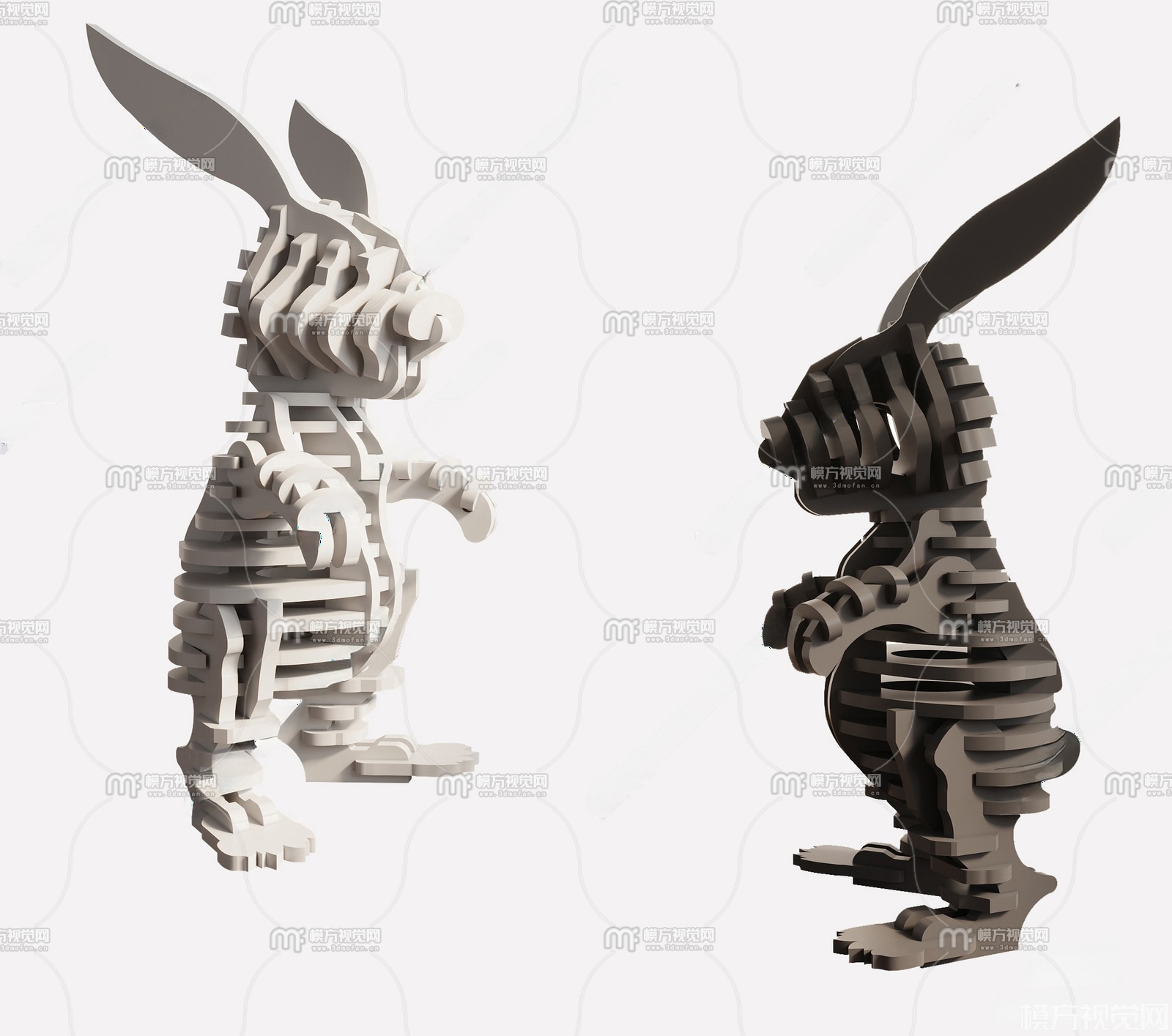 现代积木动物雕塑摆件3D模型(ID:0038032)