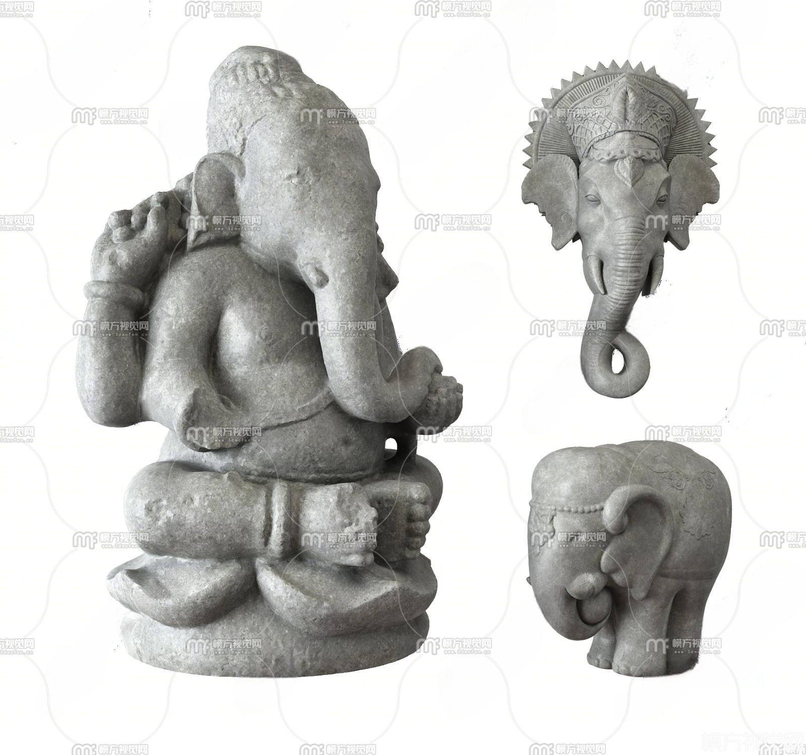 新中式大象雕塑摆件3D模型(ID:0038132)