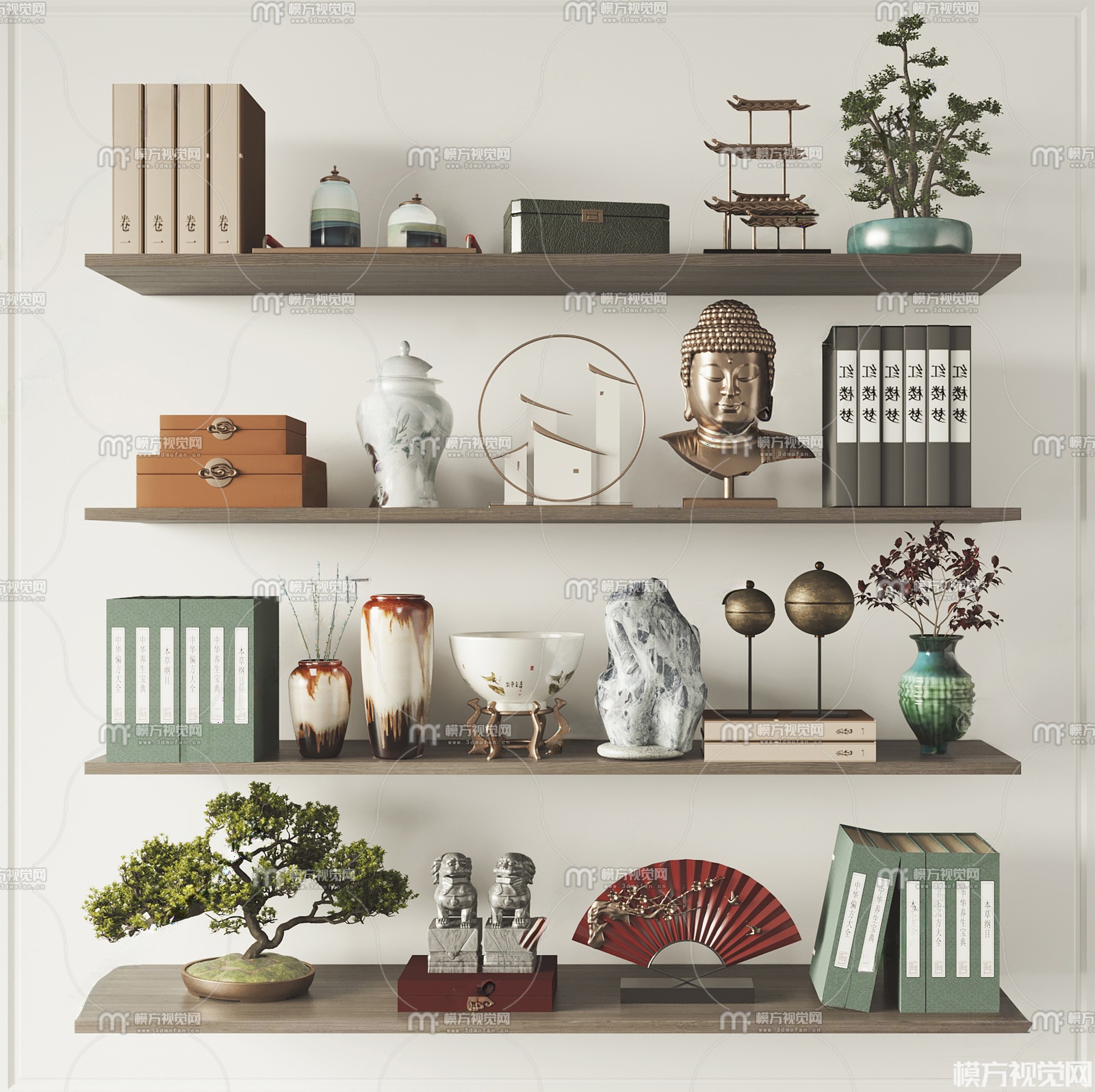 新中式雕塑盆栽摆件3D模型(ID:0038138)