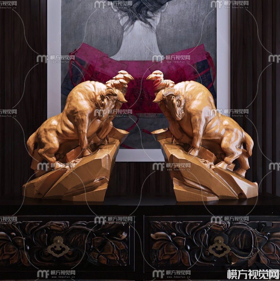 新中式顶头牛雕塑摆件3D模型(ID:0038139)
