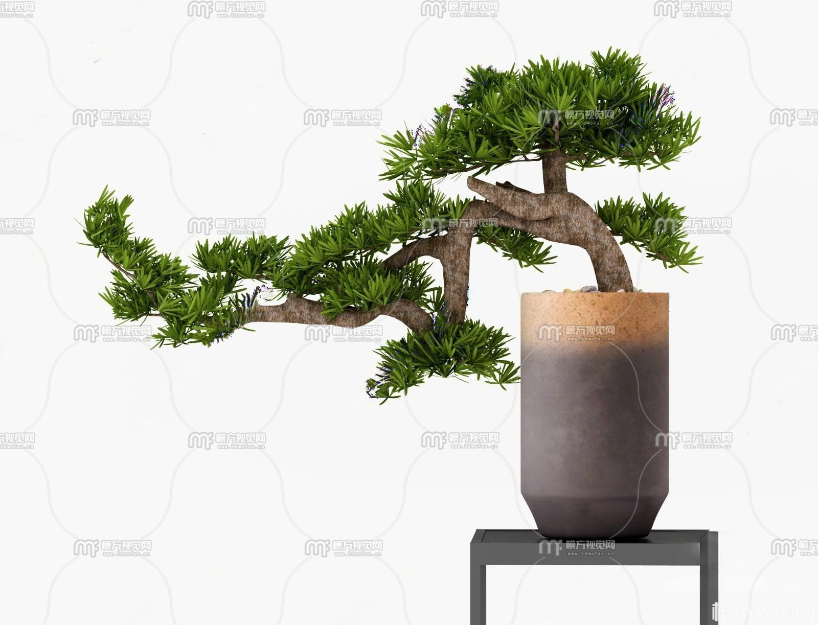 新中式花瓶松树摆件3D模型(ID:0038144)