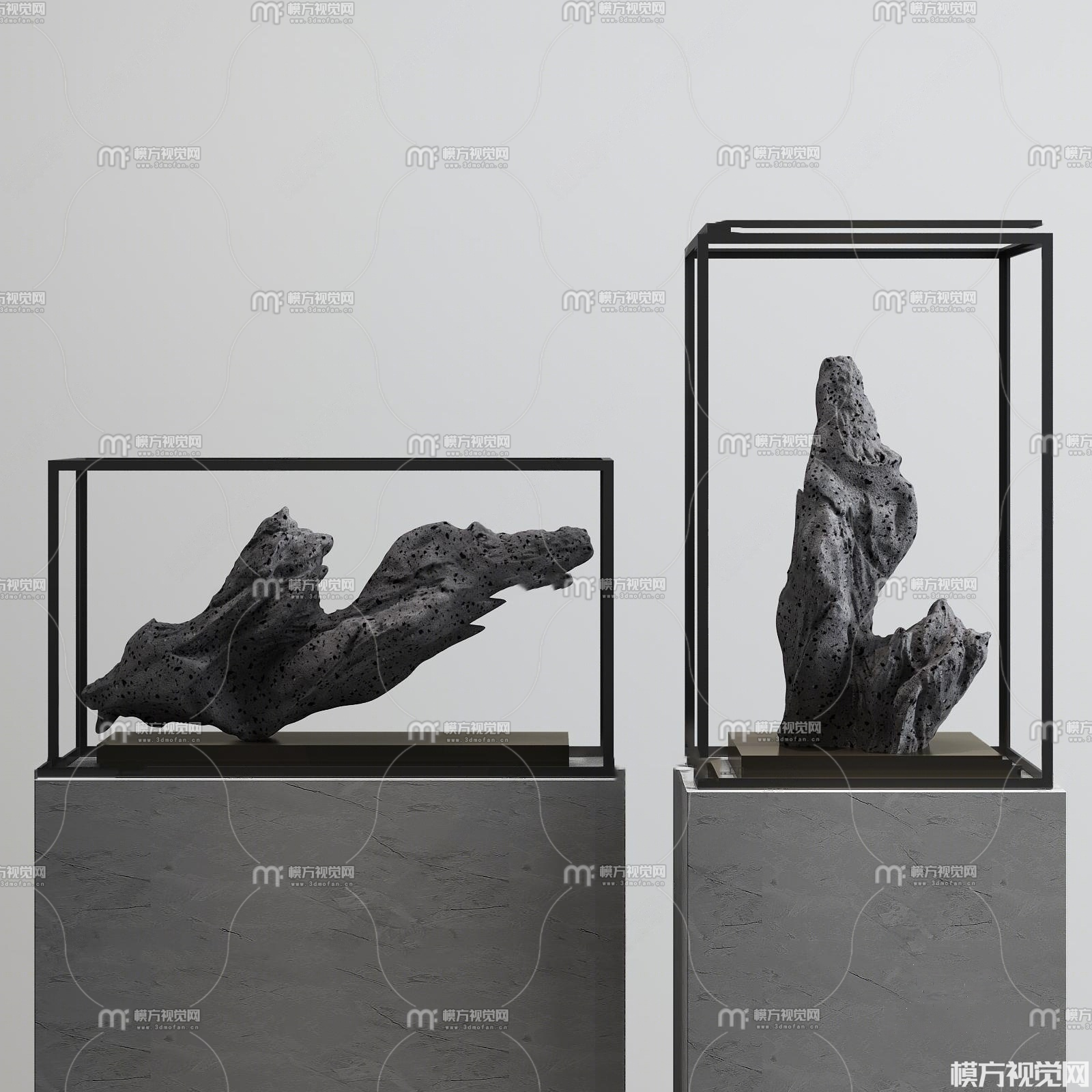 新中式石头雕塑摆件3D模型(ID:0038145)
