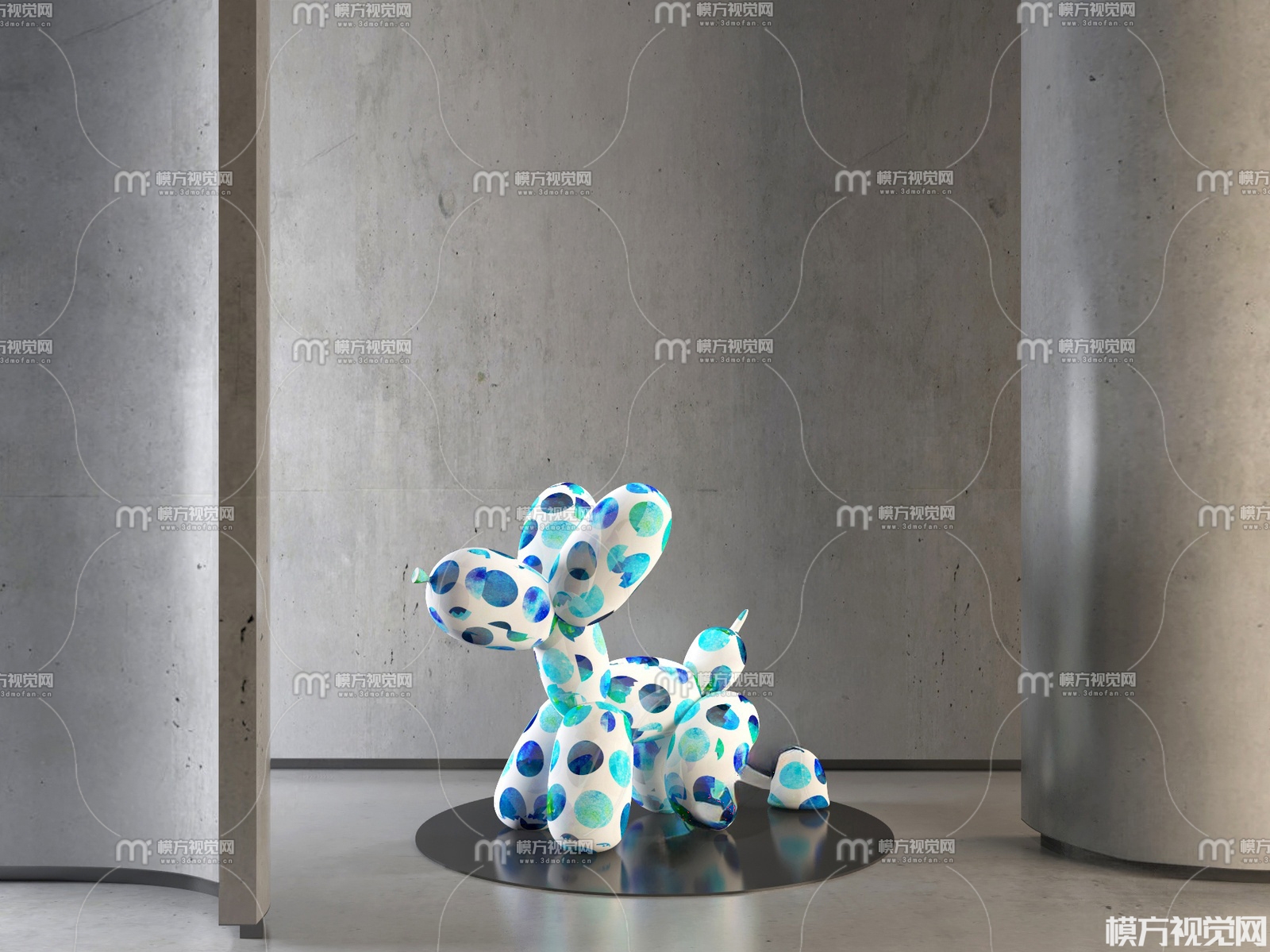现代小狗雕塑摆件3D模型(ID:0038180)
