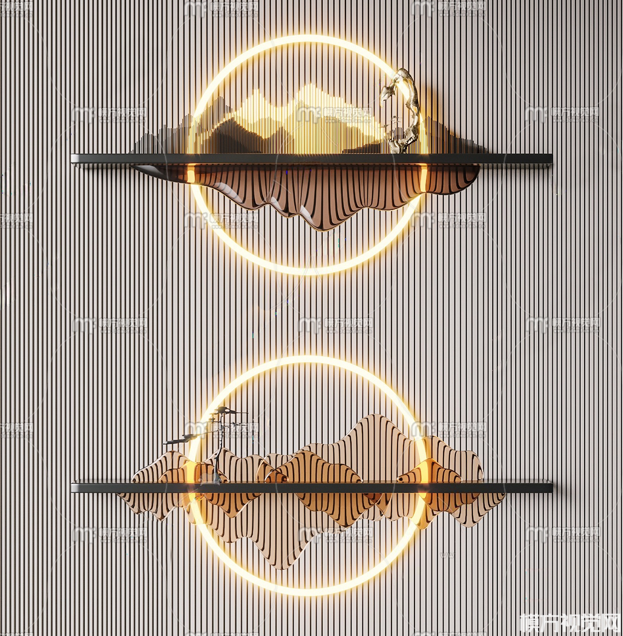 新中式禅意墙饰挂饰组合3D模型(ID:0038210)